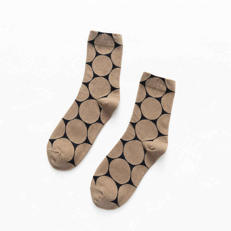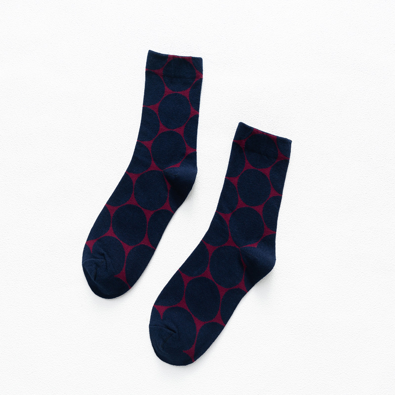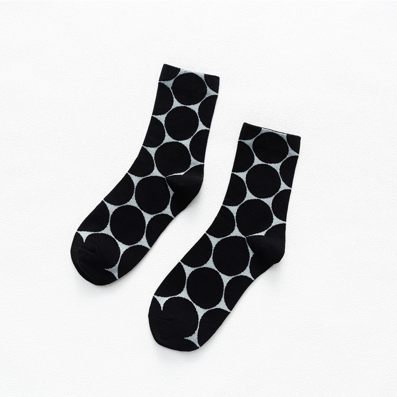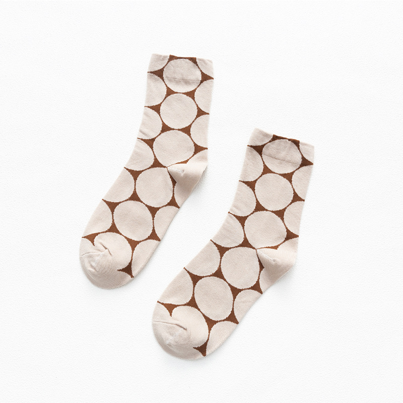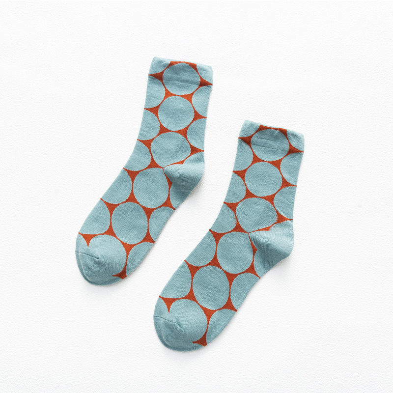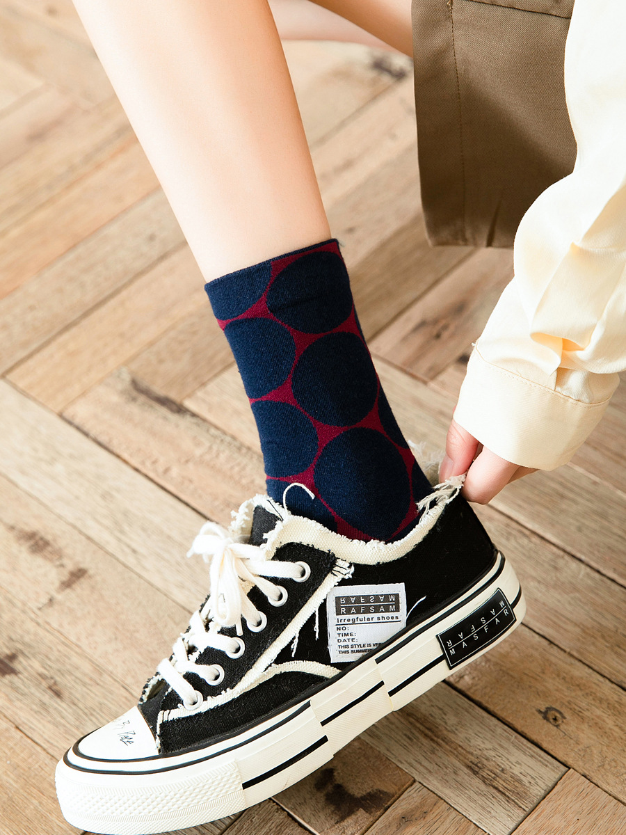 일본 가을과 겨울 여성 양말 대형 라운드 도트 간단한 영어 스타일 색상 대비 추상 귀여운 웨이브 도트 패턴 미드 양말 스택 양말