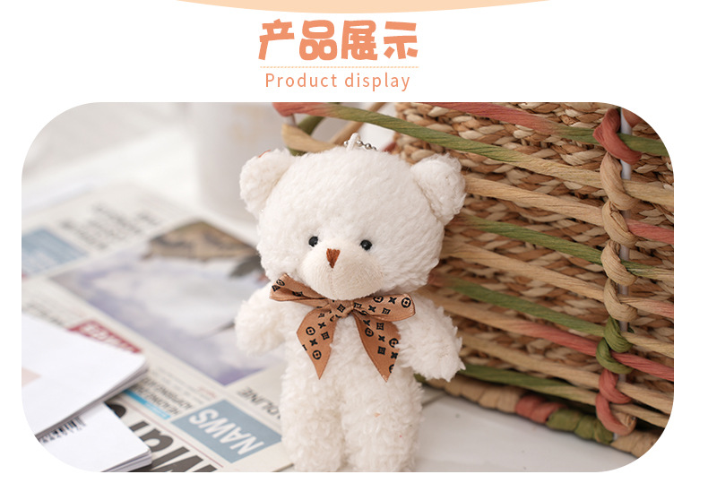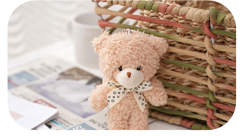 귀여운 만화 미니 나비 넥타이 곰 짧은 봉제 인형 장난감 가방 자동차 열쇠 고리 펜던트 인형 도매스토어 가기