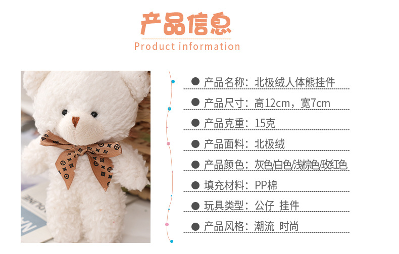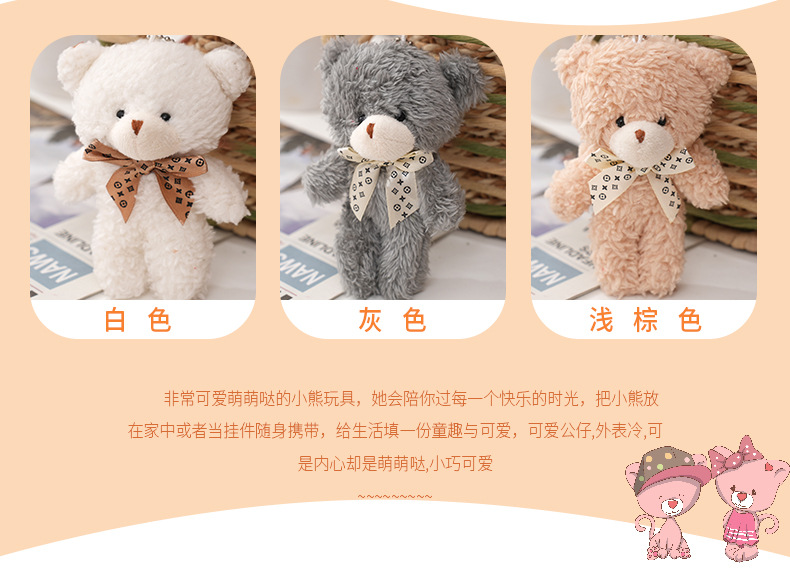 귀여운 만화 미니 나비 넥타이 곰 짧은 봉제 인형 장난감 가방 자동차 열쇠 고리 펜던트 인형 도매