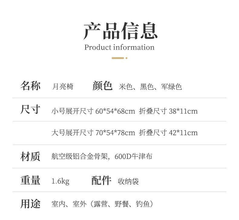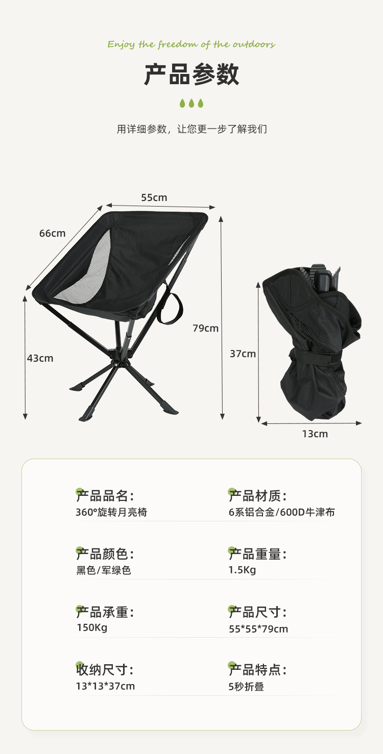 户外露营野餐营地折叠椅伞椅铝合金轻量便携式靠背月亮椅厂家批发