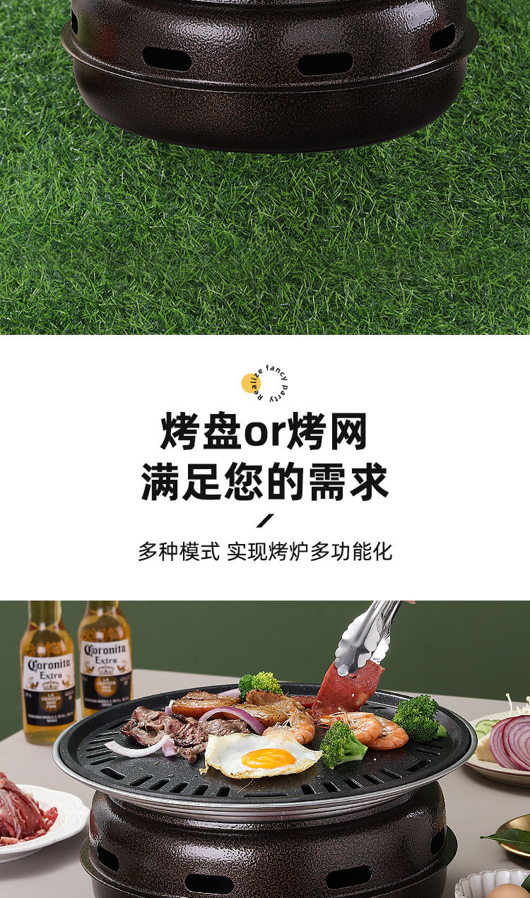 라운드 숯 스테인레스 스틸 한국식 오븐 야외 편리한 탄소 그릴 가정용 상업용 캠핑 바베큐 접시스토어 가기