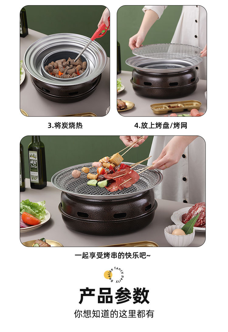 라운드 숯 스테인레스 스틸 한국식 오븐 야외 편리한 탄소 그릴 가정용 상업용 캠핑 바베큐 접시
