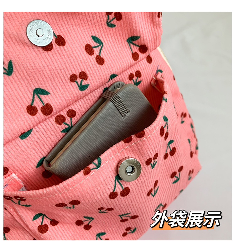 다채로운 옥스포드 천 배낭 트렌디 한 새로운 겨울 경량 여성 배낭 여성용 체리 프린트 큰 어린이 배낭스토어 가기