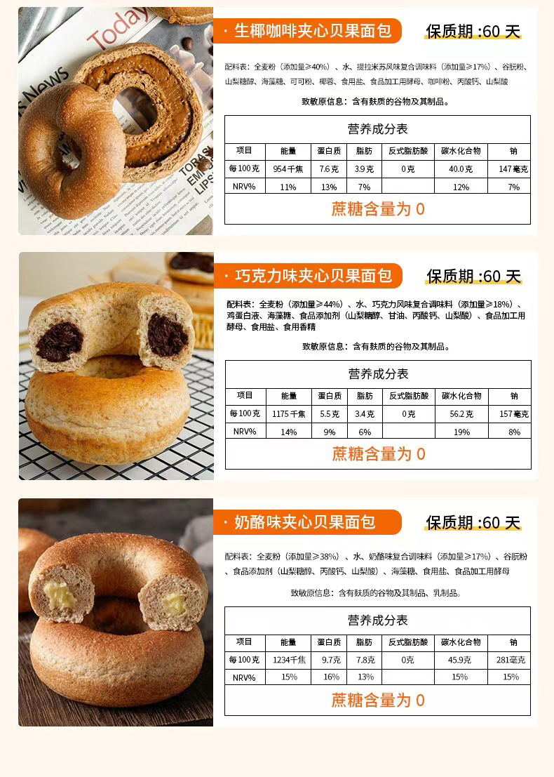 설탕 무첨가 샌드위치 베이글빵, 식사대용 아침식사, 미트플로스, 바다소금, 치즈맛 스낵, 페이스트리, 도매