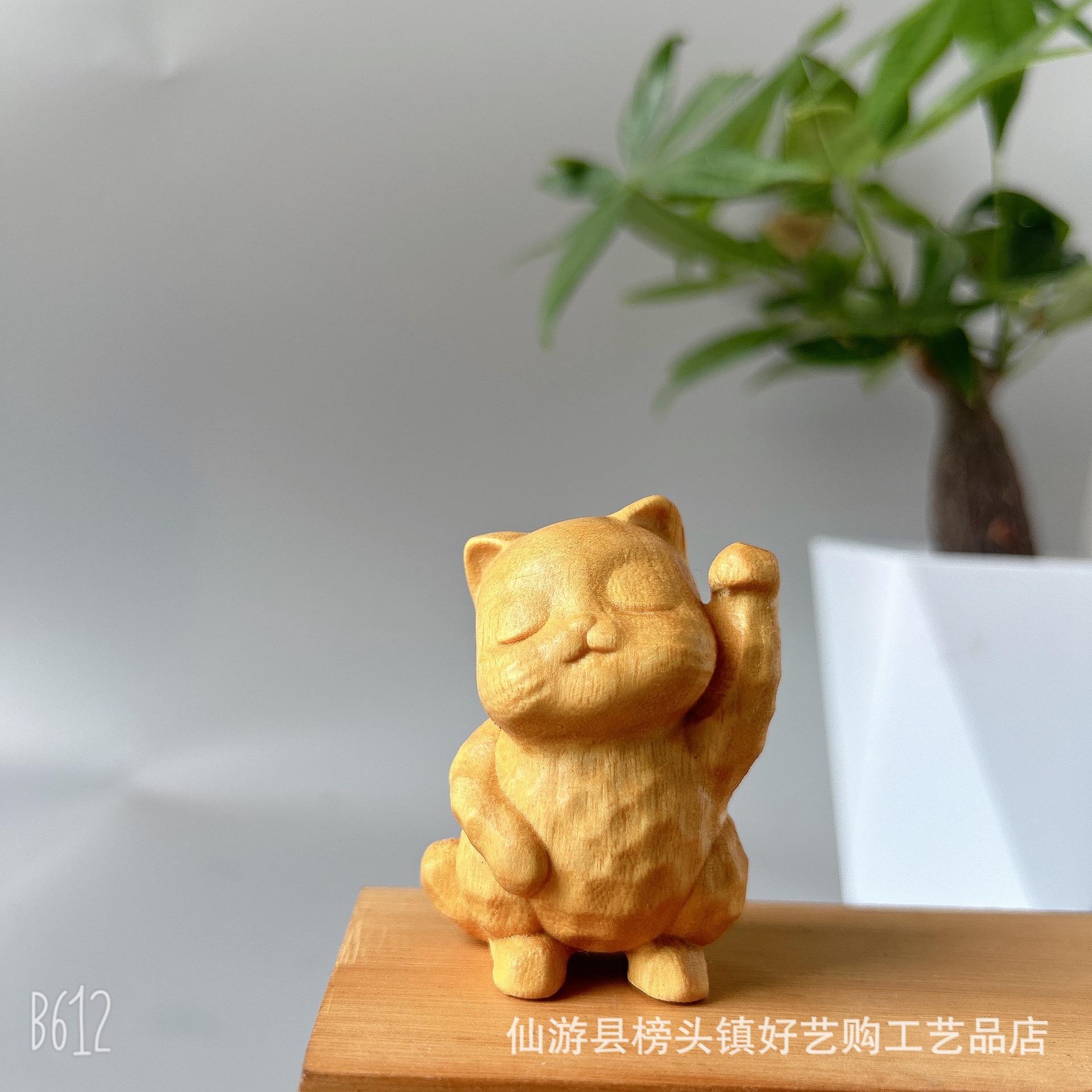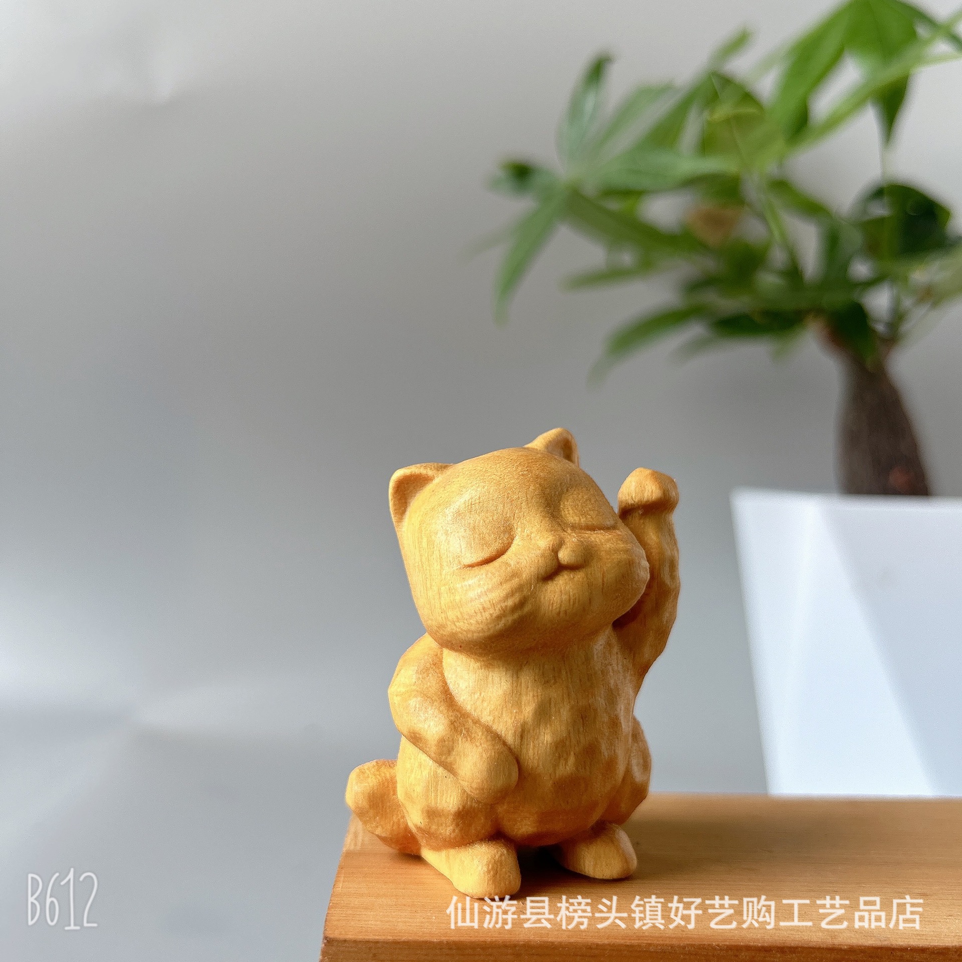 황금 Sandalwood Aojiao 고양이 솔리드 우드 보리 TV 시리즈 같은 스타일 고양이 만화 귀여운 선물을주는 친척 나무 새겨진 고양이 온라인 빨간 고양이