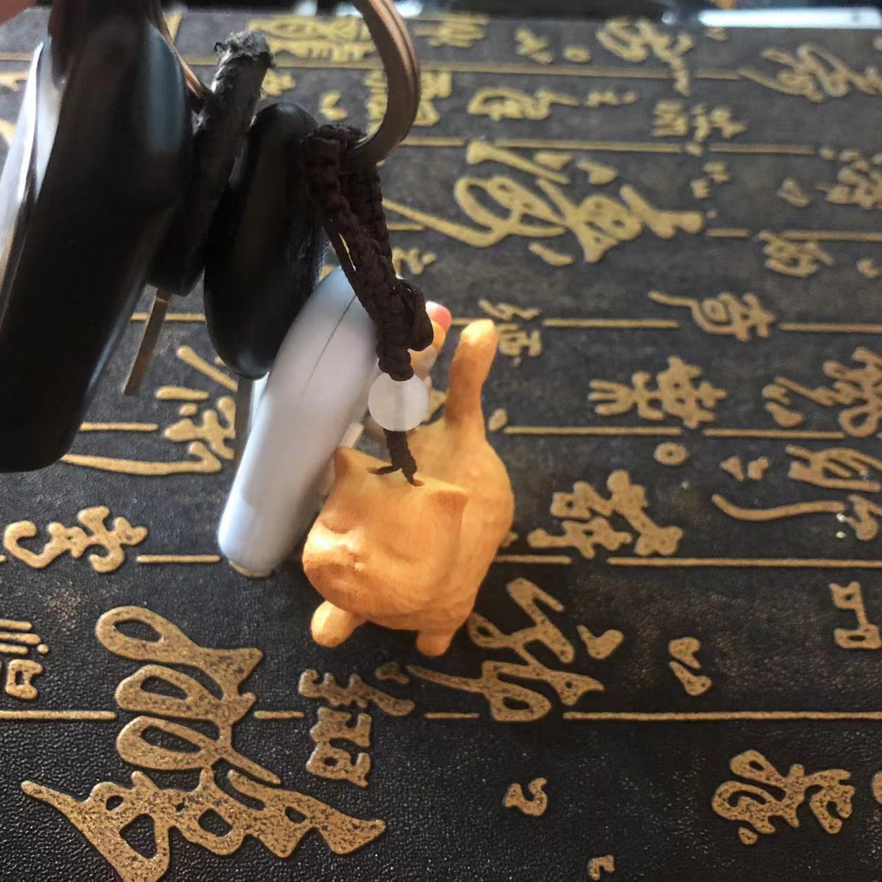 • 골든 샌달 우드 자랑스러운 매력적인 고양이 트럼펫 4.5cm 키 체인,