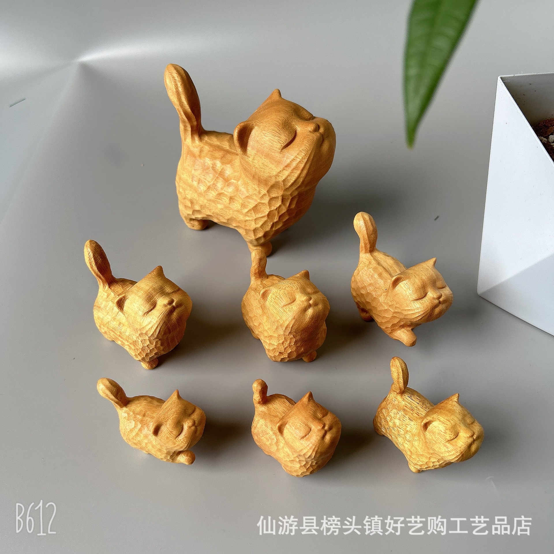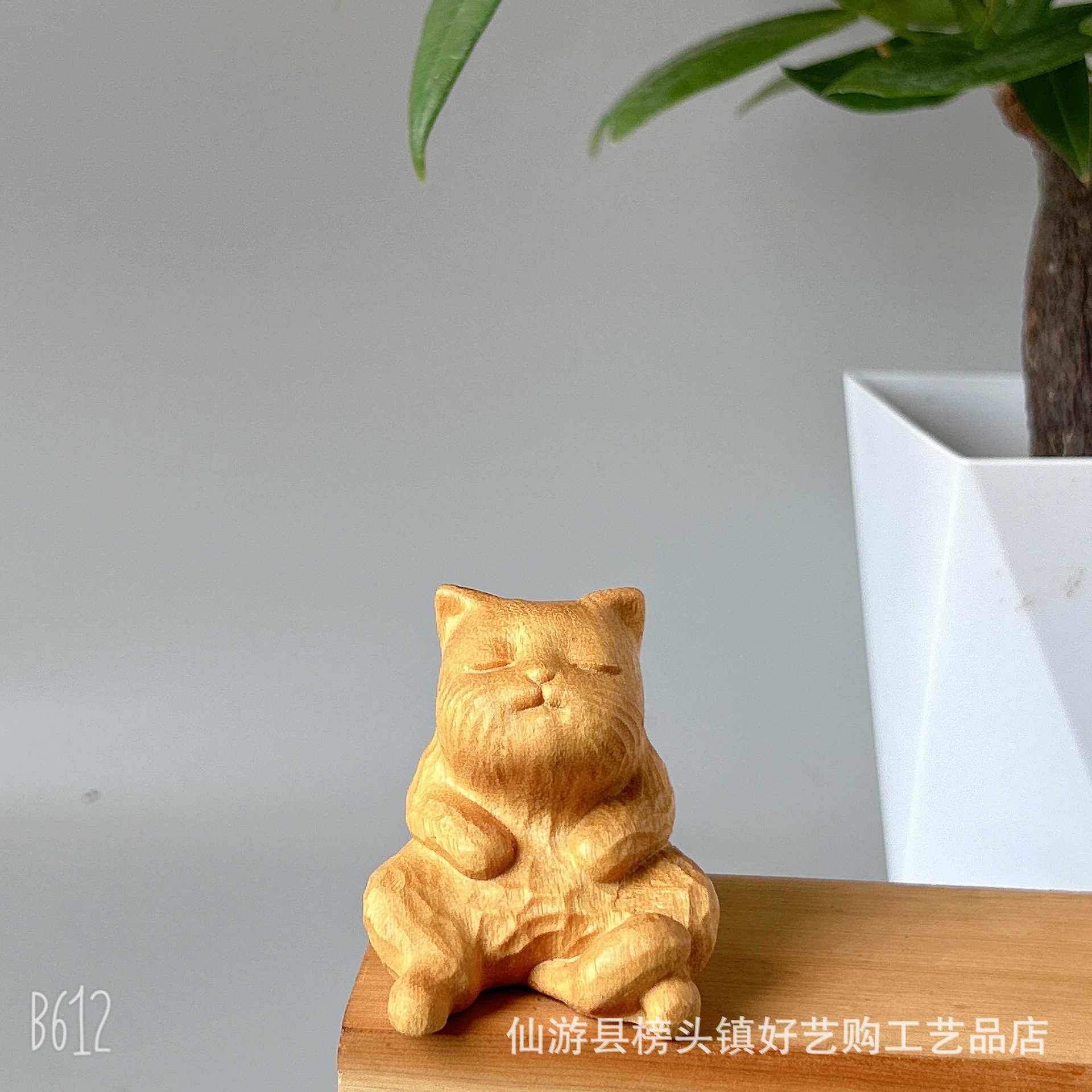 황금 Sandalwood Aojiao 고양이 솔리드 우드 보리 TV 시리즈 같은 스타일 고양이 만화 귀여운 선물을주는 친척 나무 새겨진 고양이 온라인 빨간 고양이스토어 가기