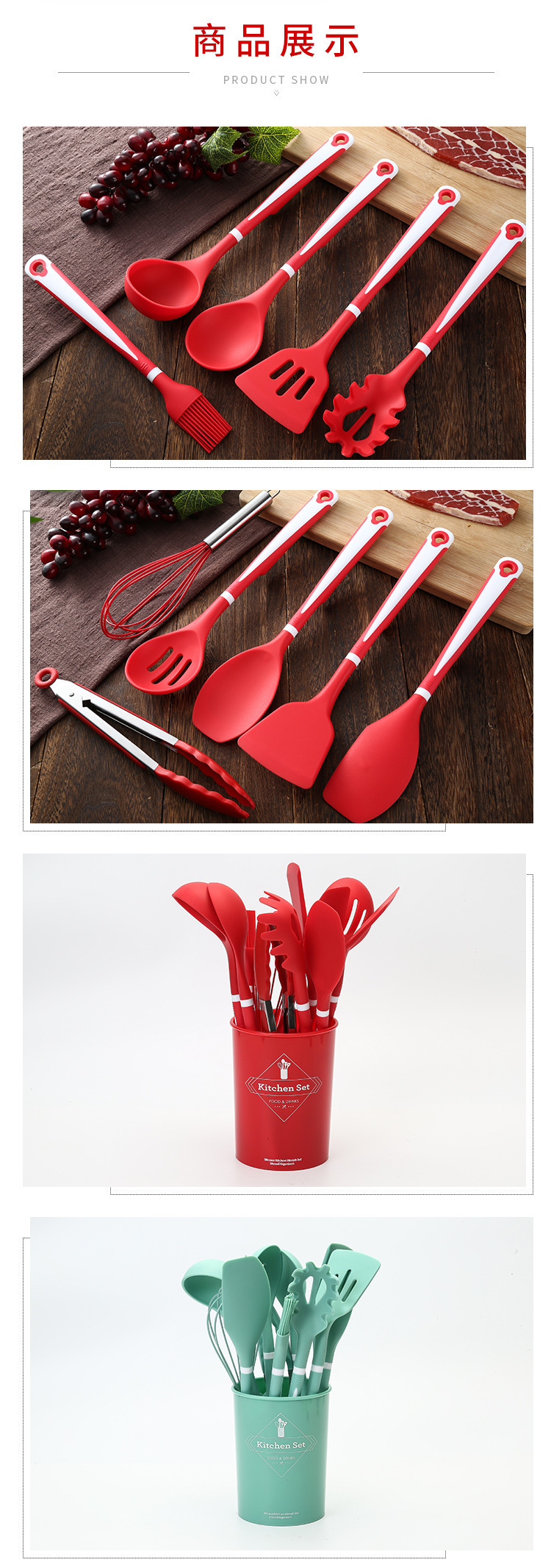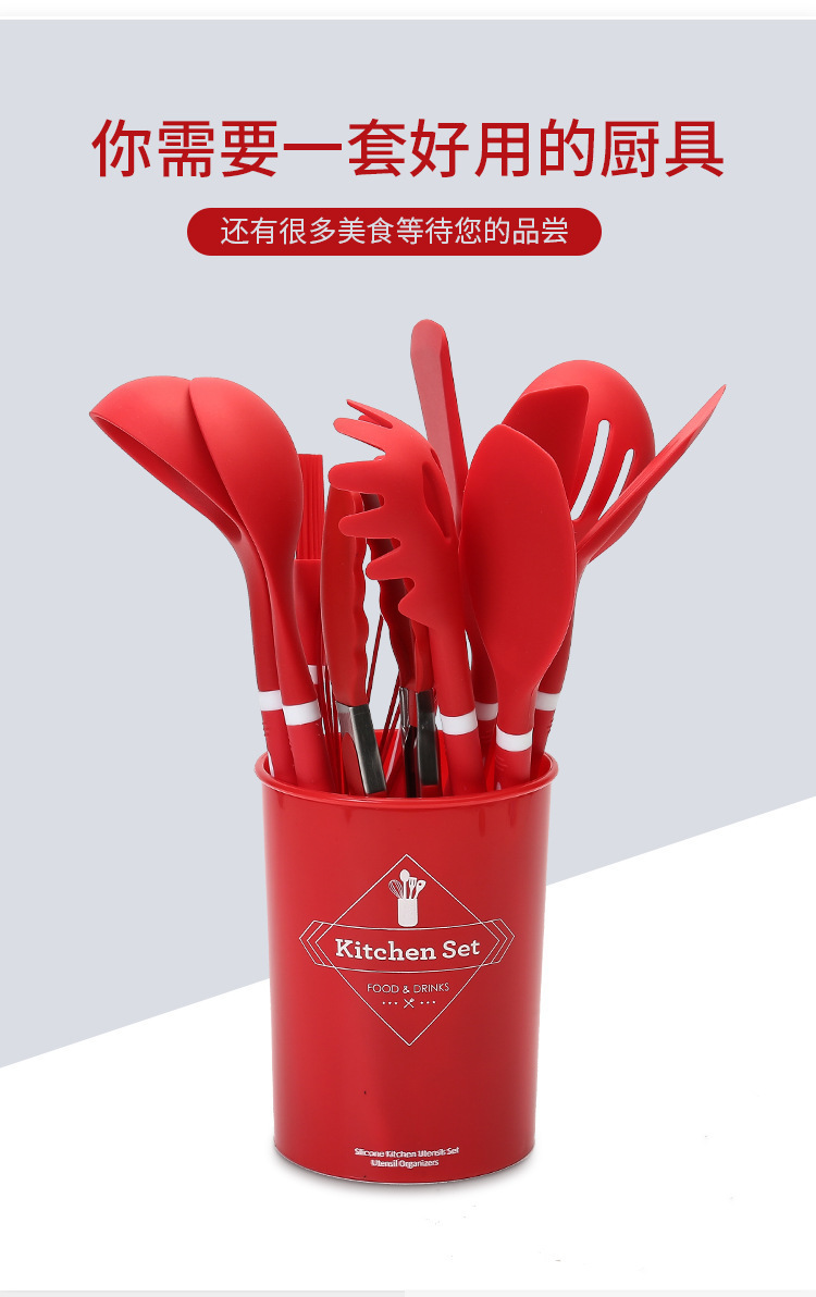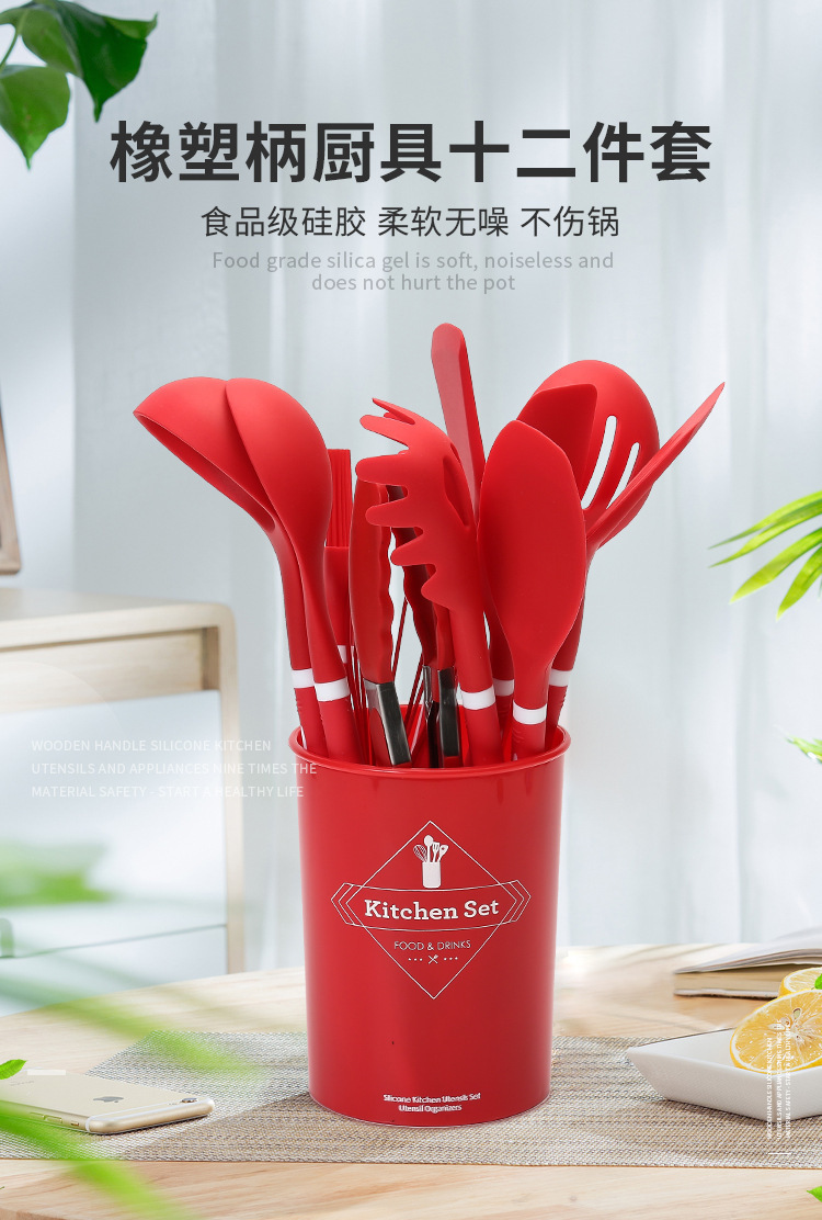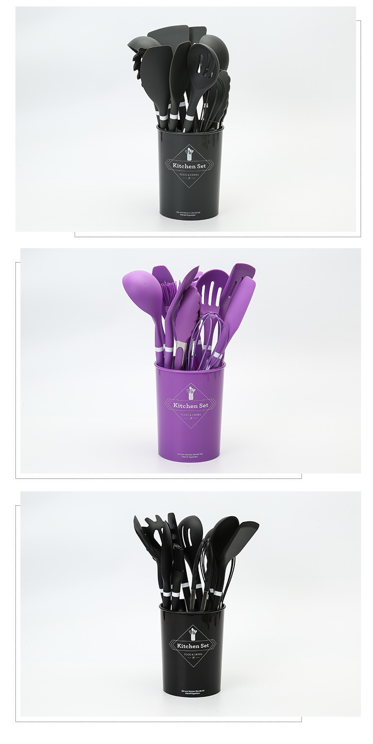실리콘 주방 용품 12 종 세트 식품 학년 요리 삽 및 숟가락 보관 키트 주방 도구 요리 실리콘 냄비 세트스토어 가기