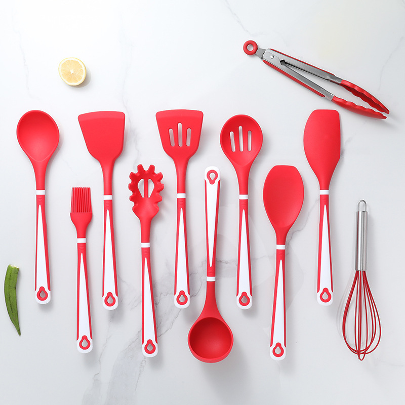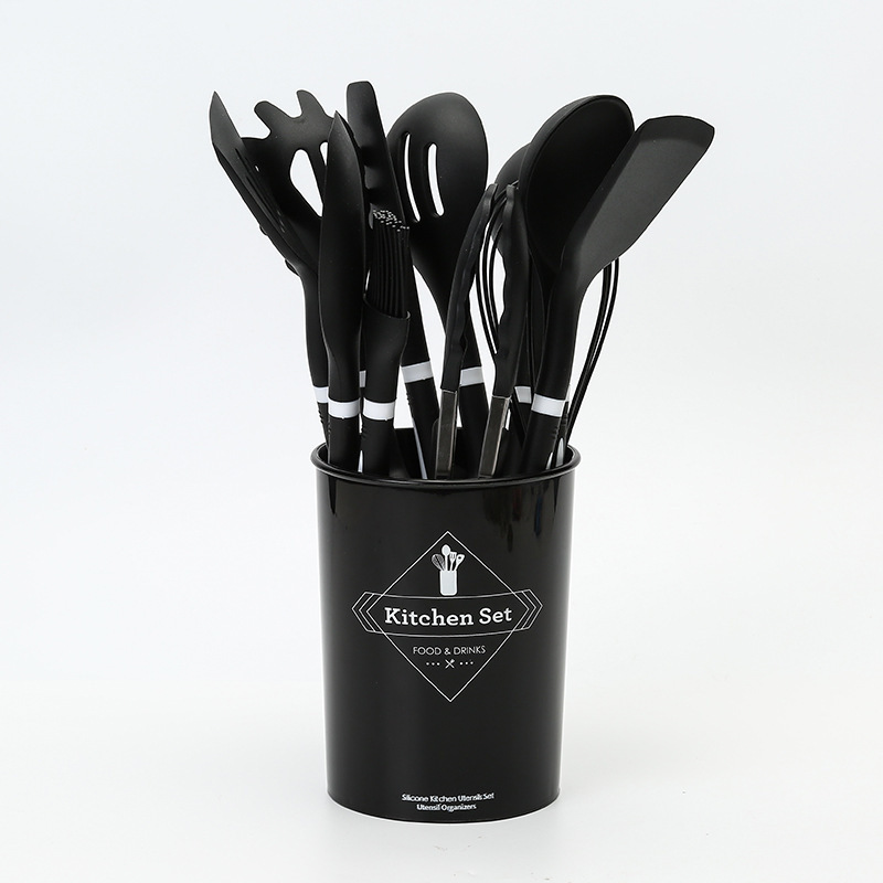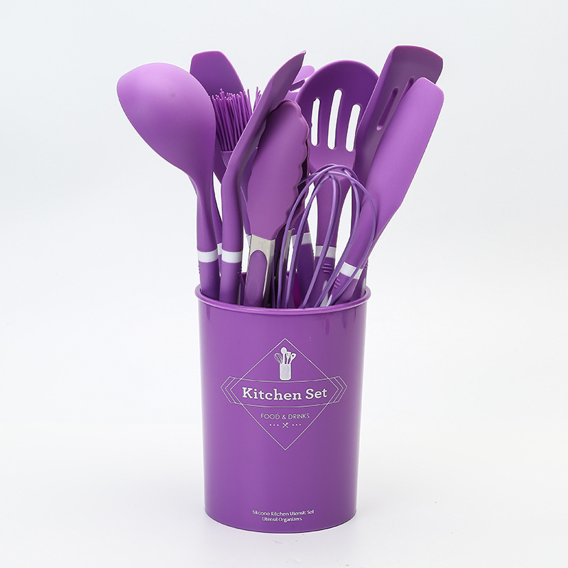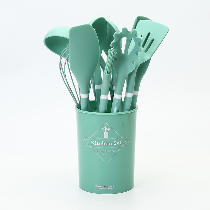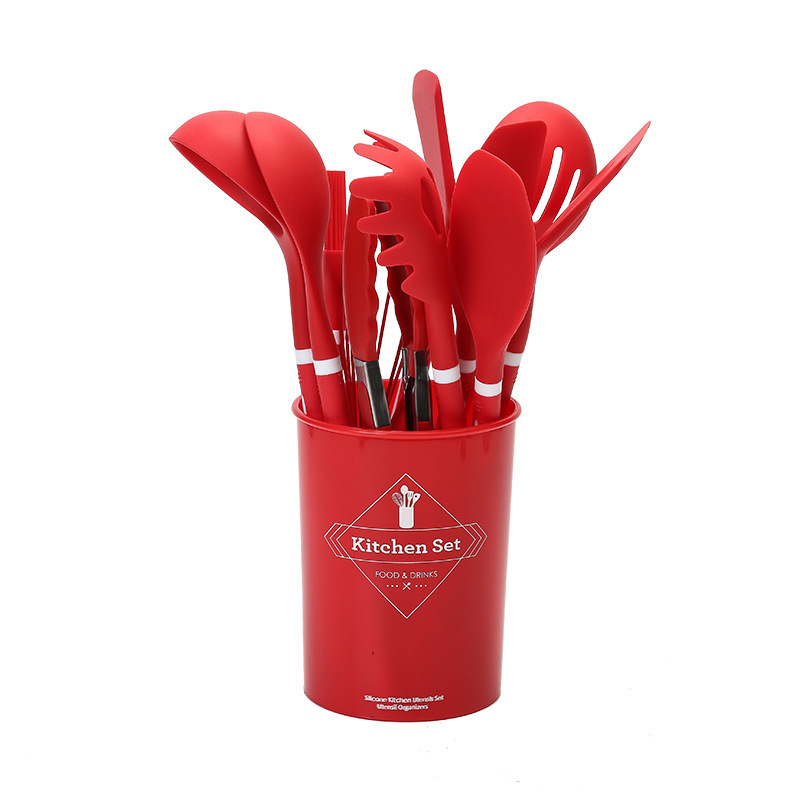 실리콘 주방 용품 12 종 세트 식품 학년 요리 삽 및 숟가락 보관 키트 주방 도구 요리 실리콘 냄비 세트