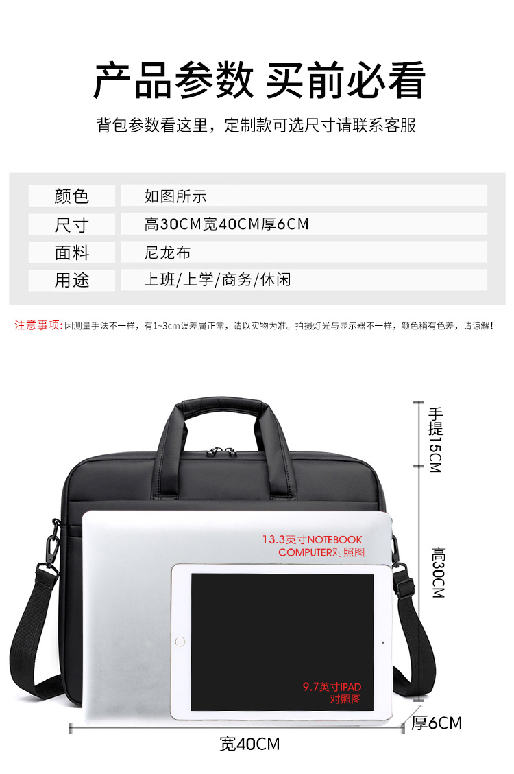 새로운 노트북 가방 방수 나일론 핸드백 남성용 대용량 싱글 피스 크로스바디 백 서류 가방 로고 인쇄스토어 가기
