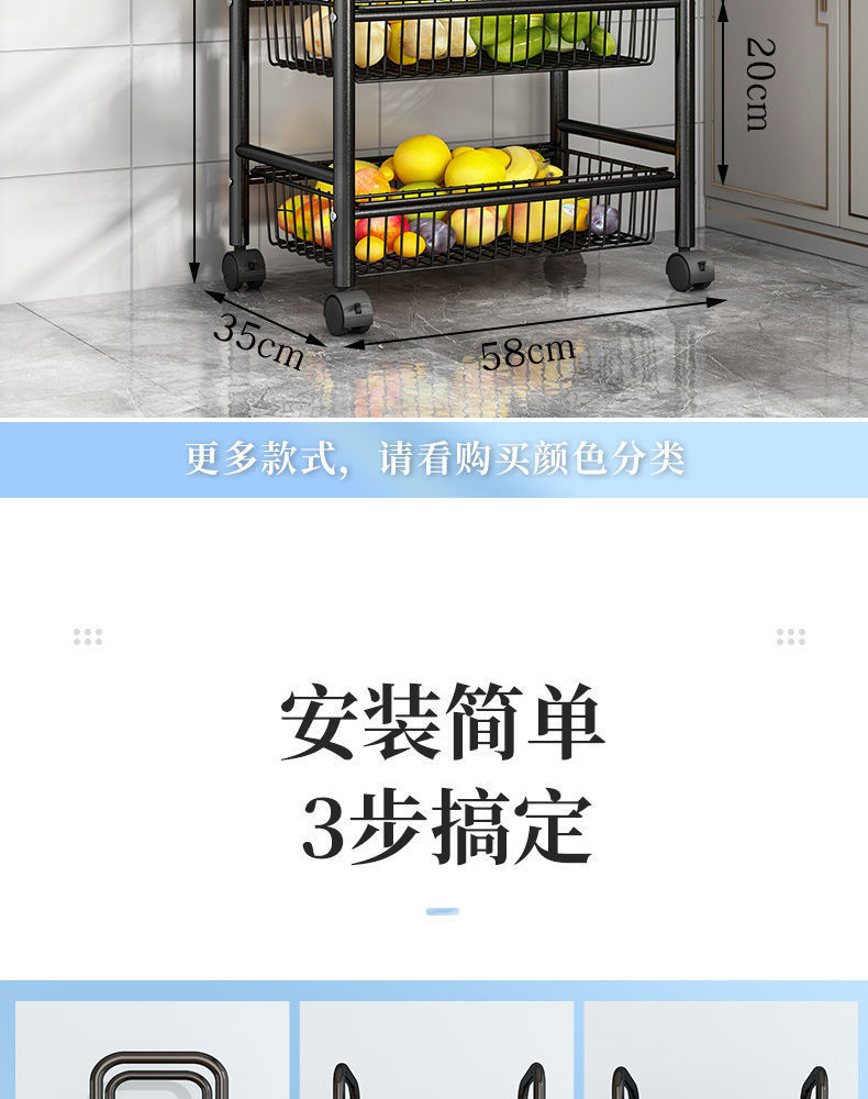 주방 스토리지 랙 바닥 다층 이동식 스토리지 랙 가정용 스토리지 카트 다기능 야채 및 과일 랙스토어 가기