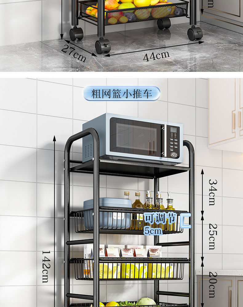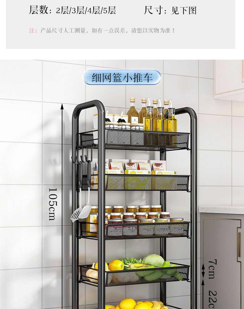 주방 스토리지 랙 바닥 다층 이동식 스토리지 랙 가정용 스토리지 카트 다기능 야채 및 과일 랙