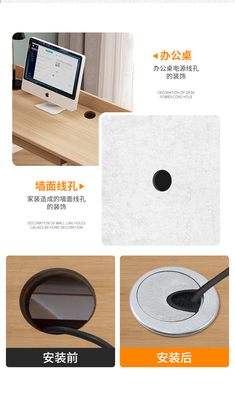 컴퓨터 책상 실 구멍 커버 데스크 데스크탑 스레딩 책상 구멍 캐비닛 둥근 구멍 스레딩 상자 장식 실 구멍 커버스토어 가기