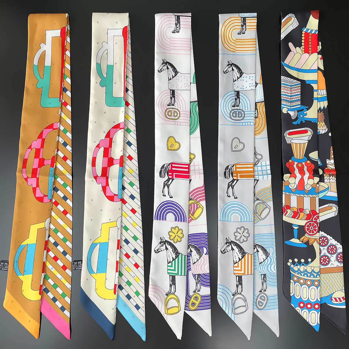 새로운 실크 같은 경 사진 작은 스카프 디지털 인쇄 리본 능직 실크 여성용 헤어 벨트 동반 손 선물 스카프 모든 매치 패션스토어 가기