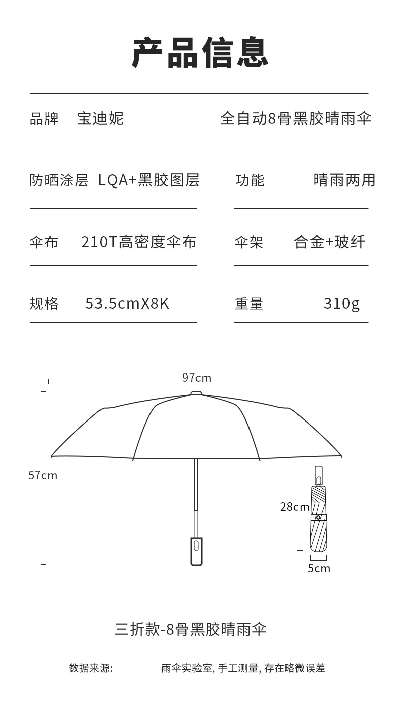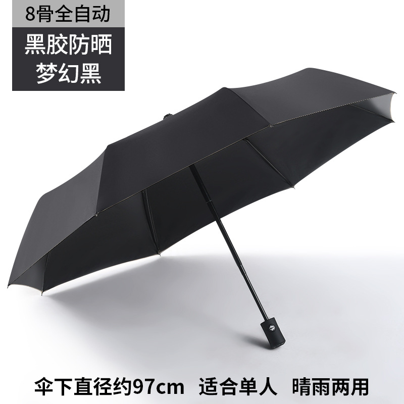 자동 이중 목적 우산 접는 태양 우산 검정 고무 우산 우산 도매 인쇄 가능 로고 광고 우산