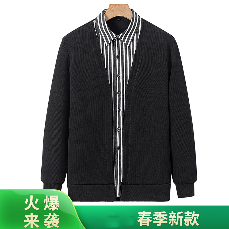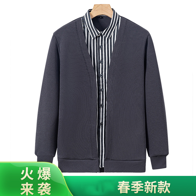 가을 새 남자의 가짜 투피스 셔츠 스웨터 카디건 캐주얼 비즈니스 니트웨어 스웨터 재킷 남성용 헤어스토어 가기