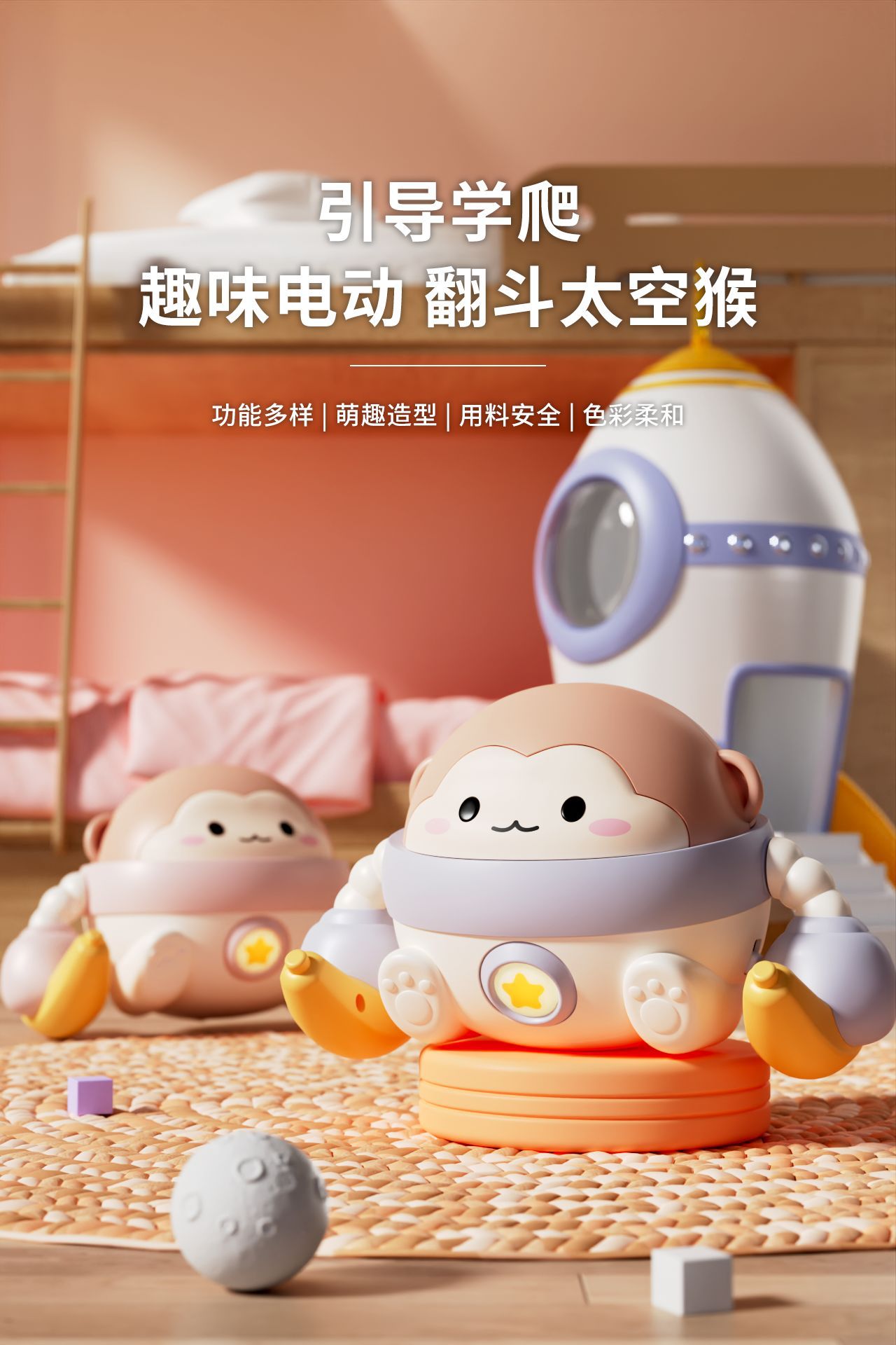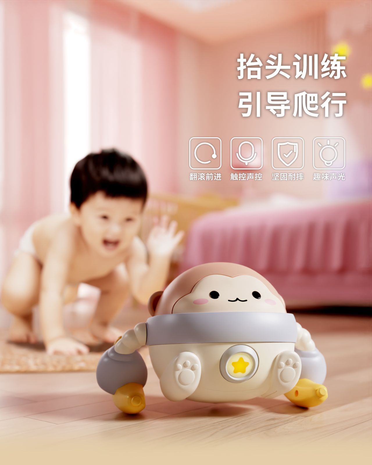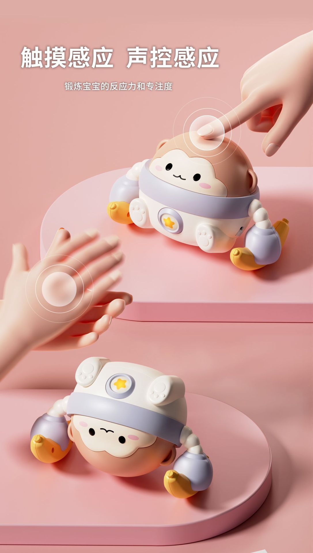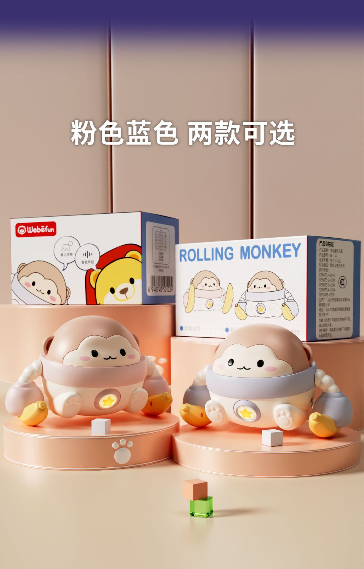 전기 텀블링 원숭이 소리 공기 유도 터치 가벼운 음악 장난감 아기 학습 크롤링 헤드 업 훈련 작은 장난감스토어 가기