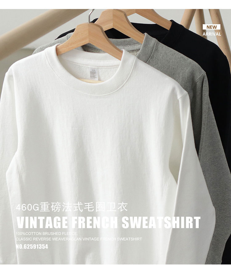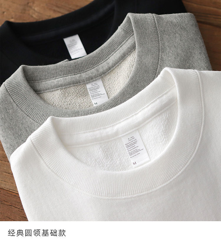 380g 무거운면 테리 풀오버 조끼 남성용 복고풍 단색 스포츠 느슨한 승무원 목 코트 봄과 가을 여성스토어 가기