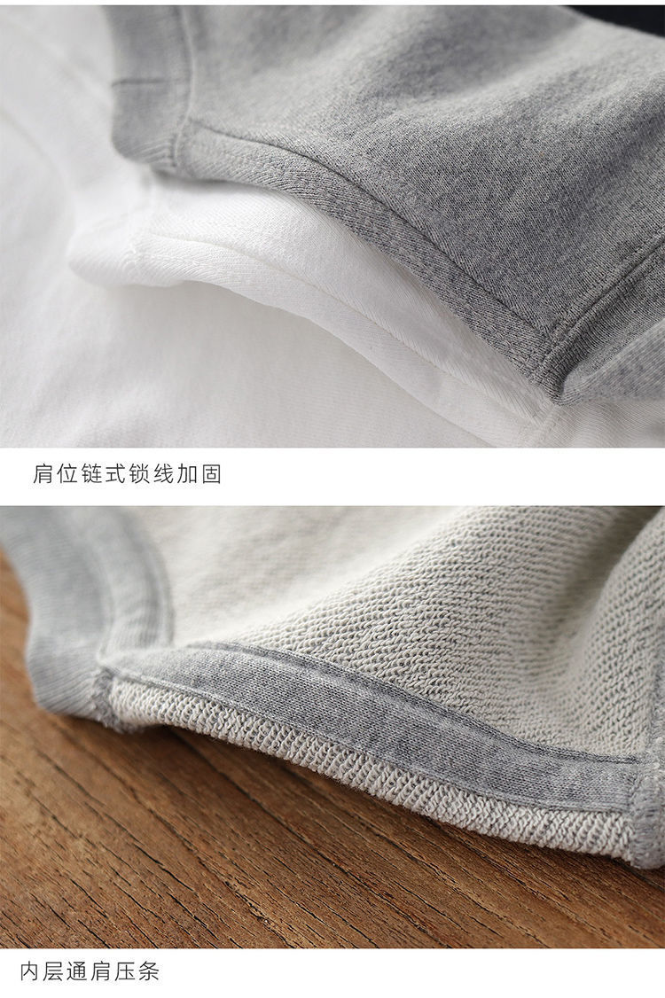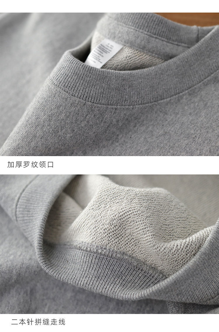 380g 무거운면 테리 풀오버 조끼 남성용 복고풍 단색 스포츠 느슨한 승무원 목 코트 봄과 가을 여성