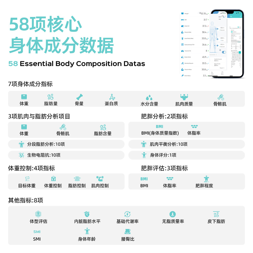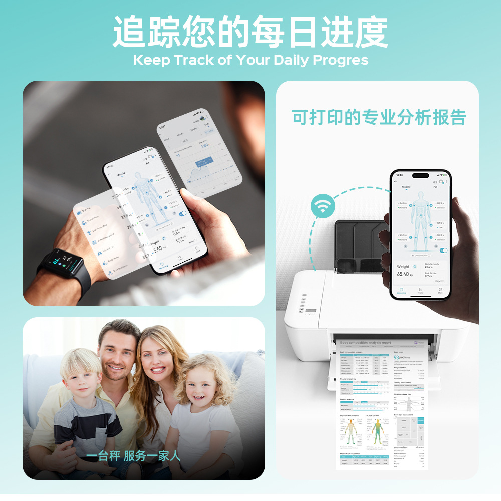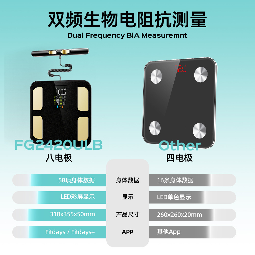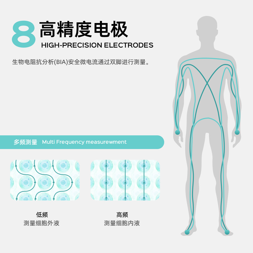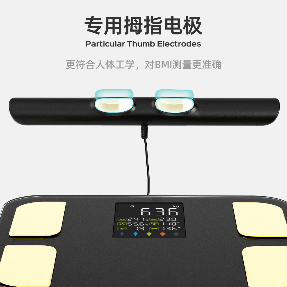 국경 간 고급 감각 8 전극 체지방 무게 지능형 피트니스 스포츠 무게 규모 APP 지방 측정 블루투스 체지방 스케일