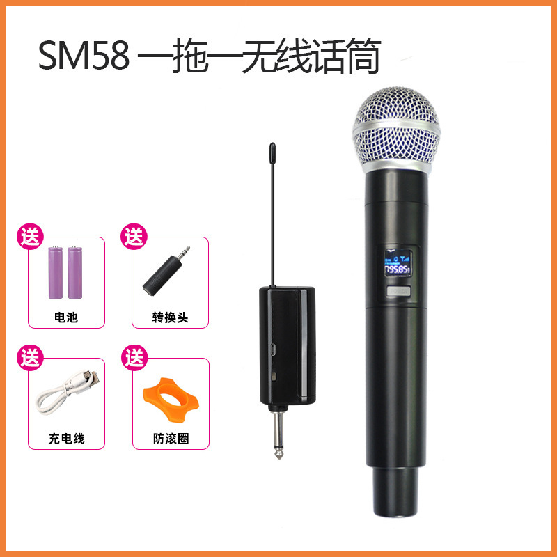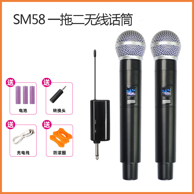 SM58 무대 퍼포먼스 1 대 2 무선 마이크 충전 마이크 사운드 카드 라이브 가라오케 로드 박스 파워 앰프 사운드