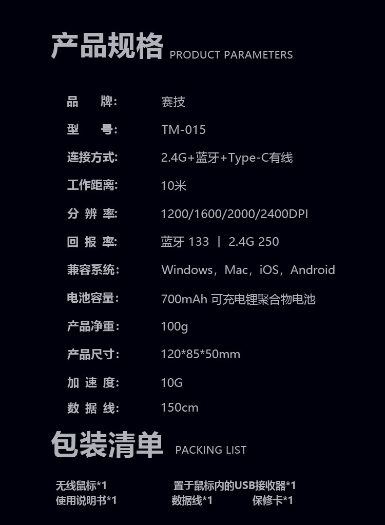 Saiji TM-015 무선 듀얼 모드 마우스 하이 엔드 오피스 마우스 드로잉 클립 마우스 맞춤형 산업 등급스토어 가기