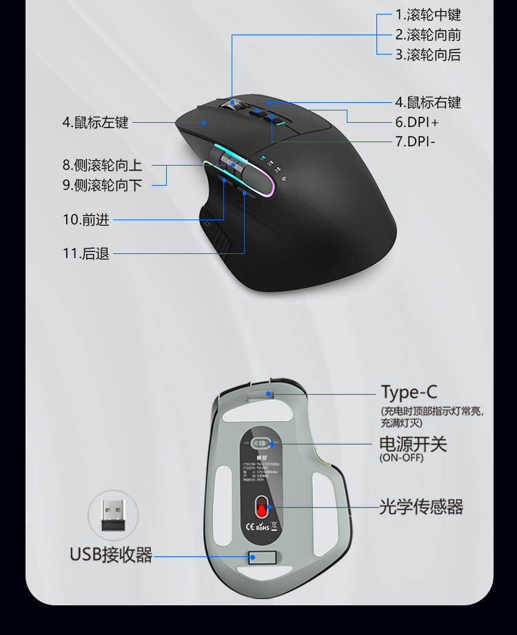 Saiji TM-015 무선 듀얼 모드 마우스 하이 엔드 오피스 마우스 드로잉 클립 마우스 맞춤형 산업 등급