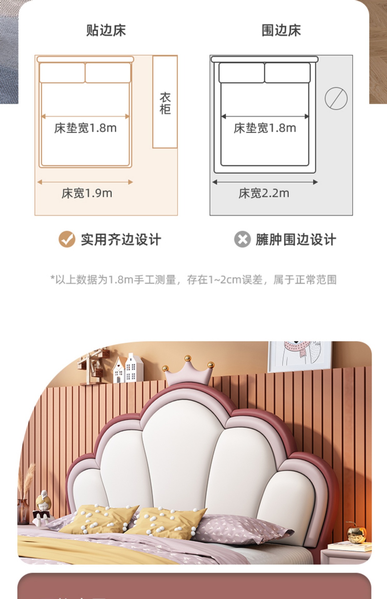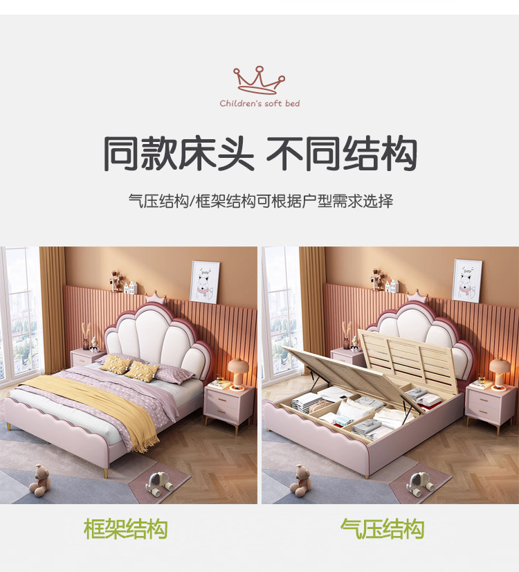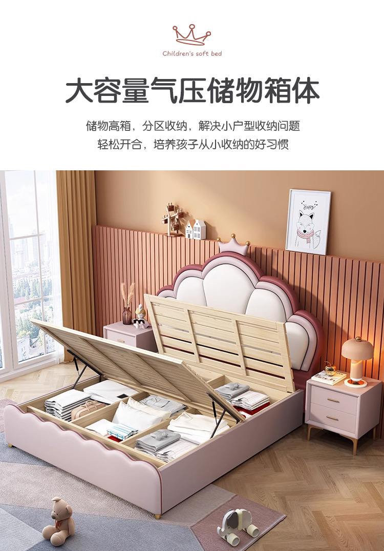 핑크 크라운 쉘 공주 침대 어린이 침대 소녀의 현대 간단한 단일 작은 아파트 침실 보관 소녀의 침대
