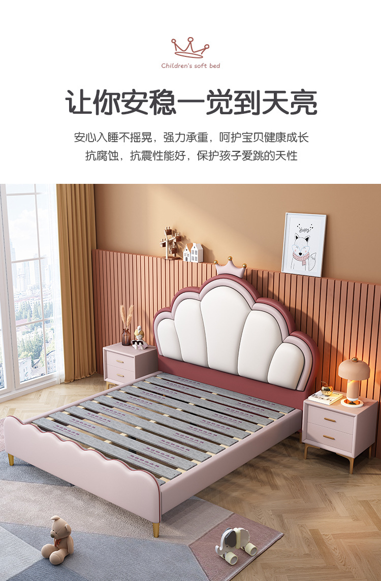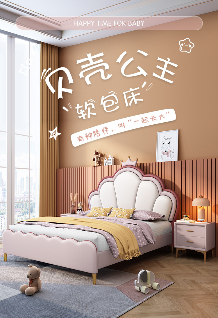 핑크 크라운 쉘 공주 침대 어린이 침대 소녀의 현대 간단한 단일 작은 아파트 침실 보관 소녀의 침대스토어 가기