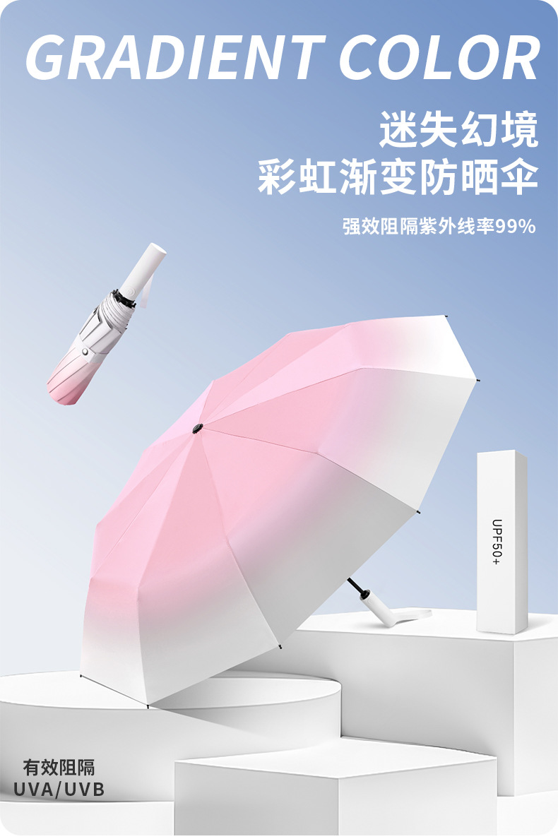 고가의 그라디언트 여아 태양 우산 자외선 차단 자동 써니 우산 이중 목적 접이식 남성용 양산 우산