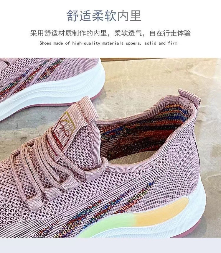 캐주얼 신발 여성의 가벼운 운동화 새로운 플라이 짠 통기성 부드러운 바닥 숙녀 흰색 신발 패션 어머니 조수 신발 도매