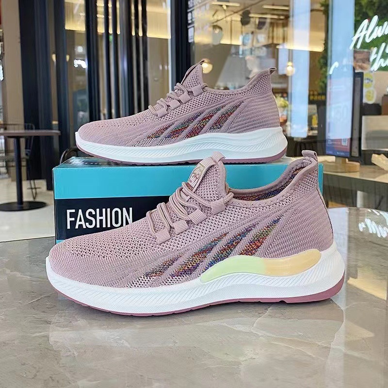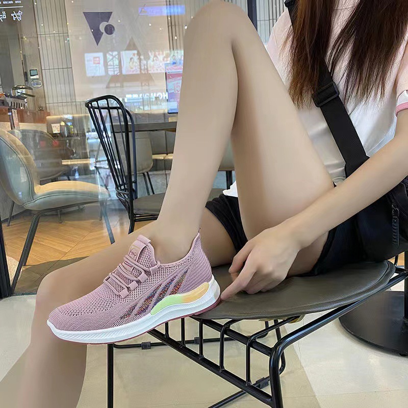 캐주얼 신발 여성의 가벼운 운동화 새로운 플라이 짠 통기성 부드러운 바닥 숙녀 흰색 신발 패션 어머니 조수 신발 도매스토어 가기