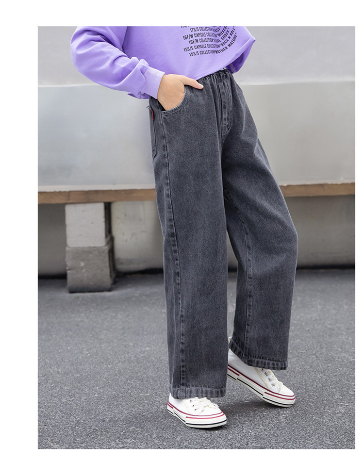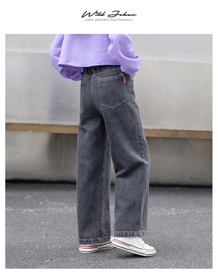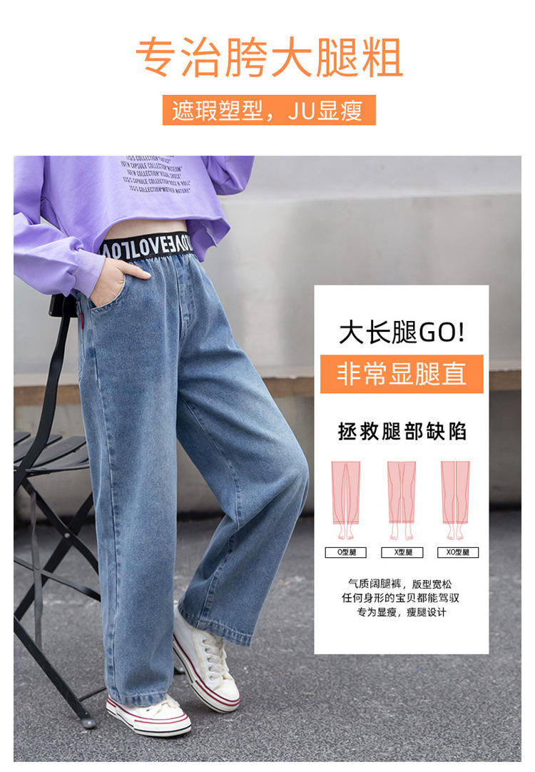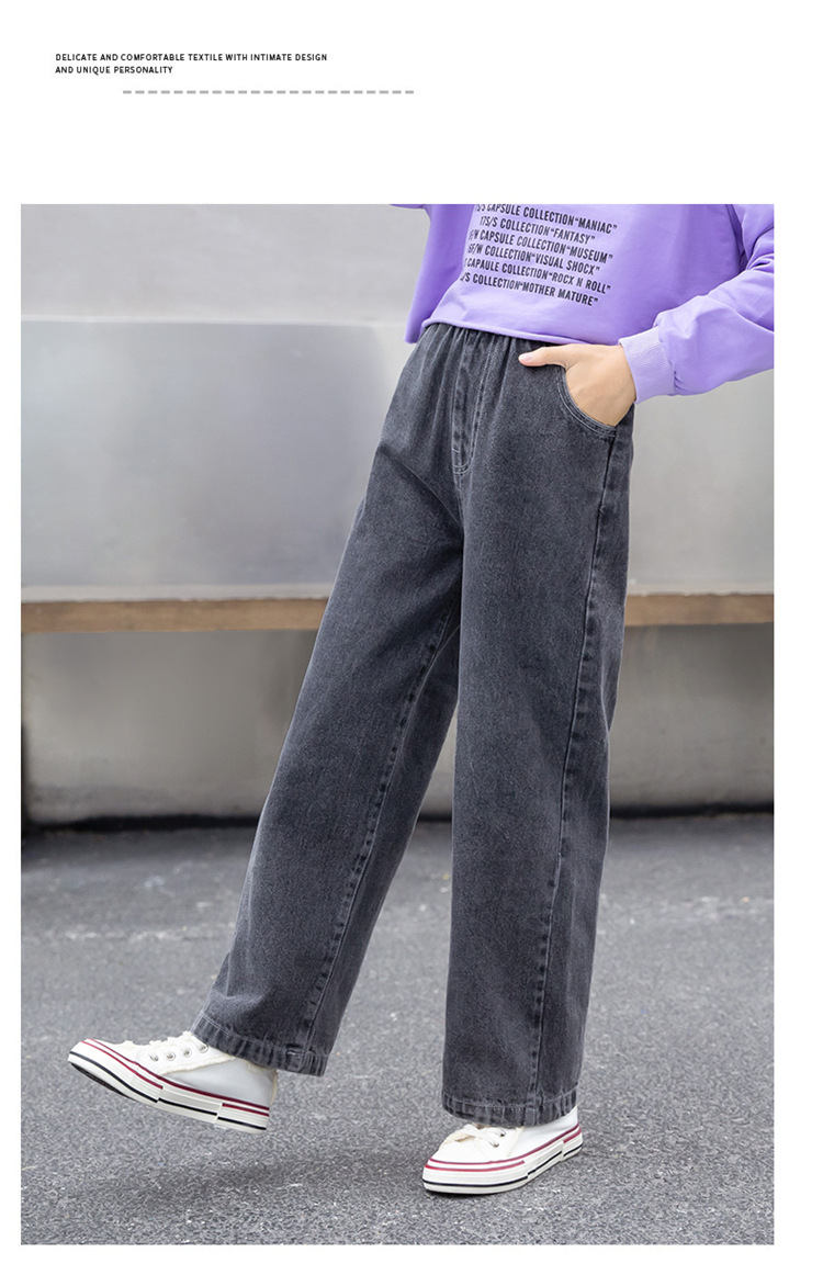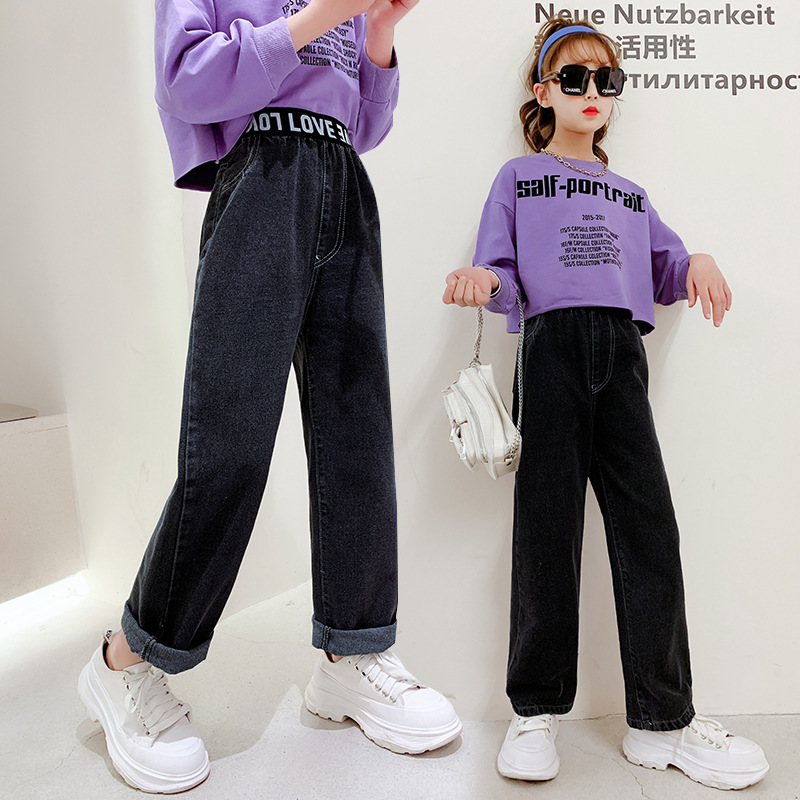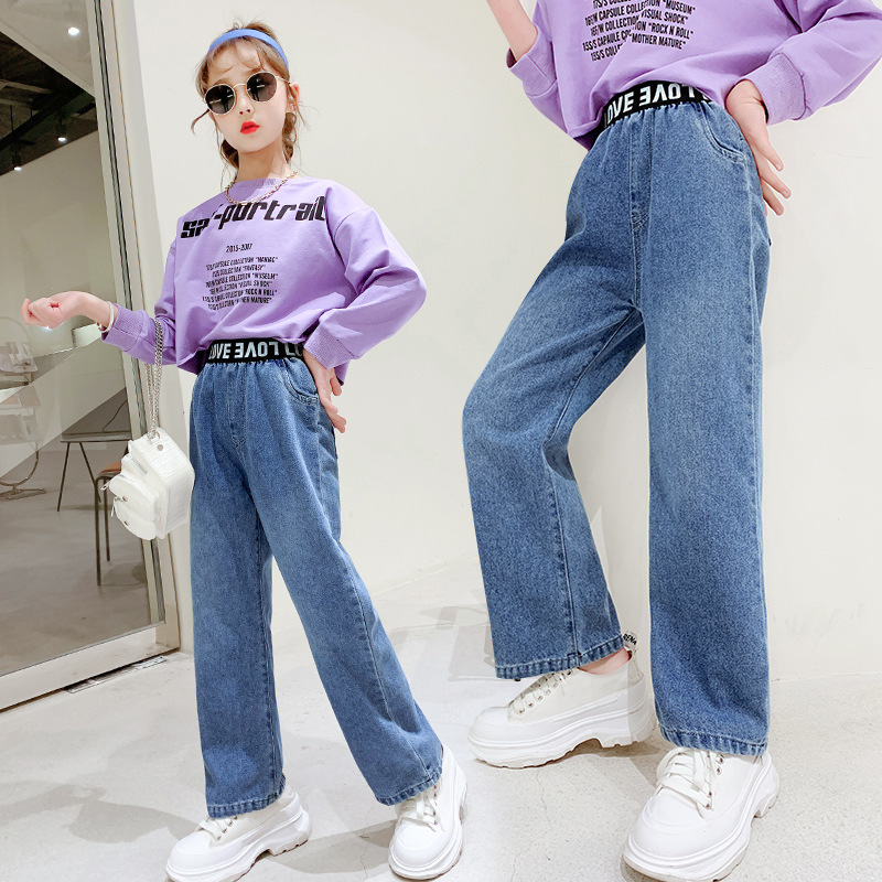 소녀의 넓은 다리 바지 봄과 가을은 서양식 느슨한 스트레이트 바지를 입고 중형 및 큰 아이들은 봄 새 청바지를 부드럽게 2021.스토어 가기