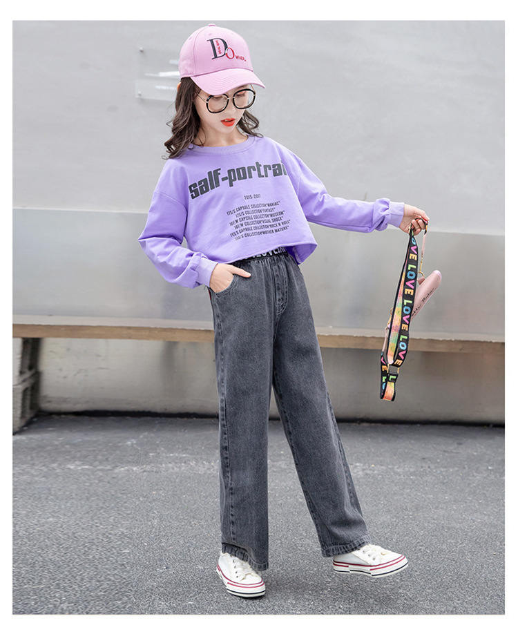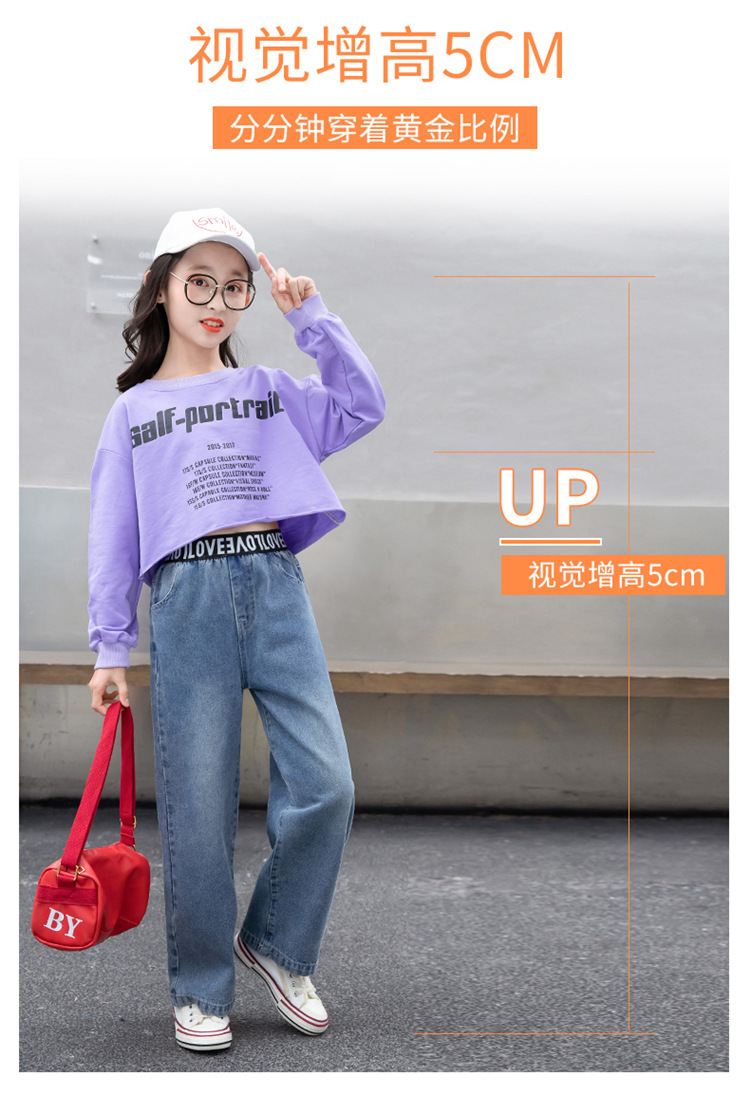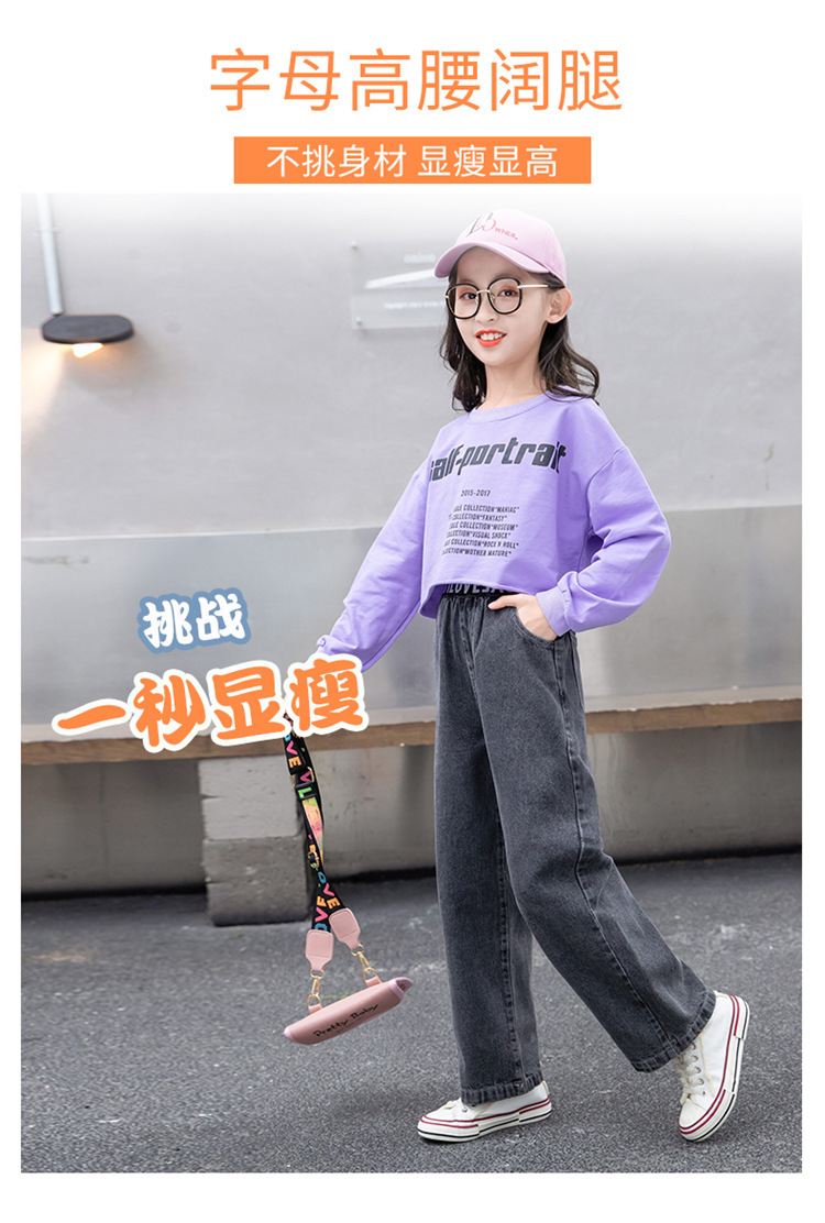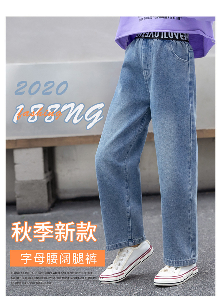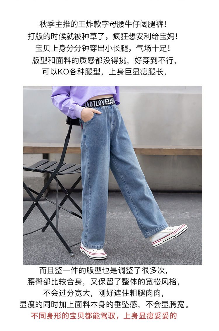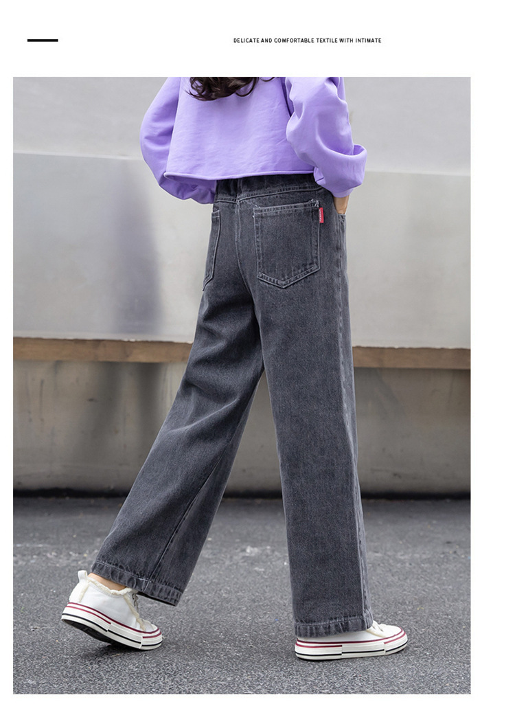 소녀의 넓은 다리 바지 봄과 가을은 서양식 느슨한 스트레이트 바지를 입고 중형 및 큰 아이들은 봄 새 청바지를 부드럽게 2021.스토어 가기