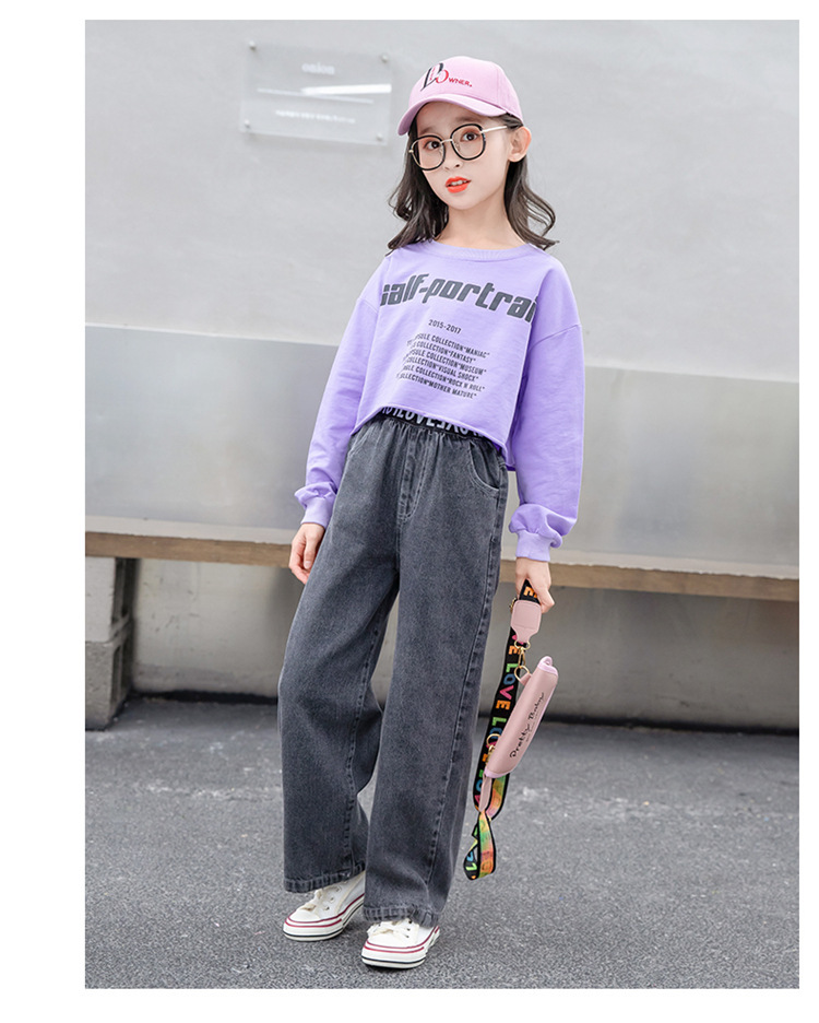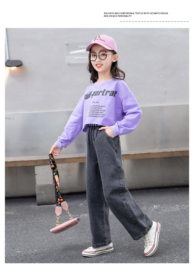 소녀의 넓은 다리 바지 봄과 가을은 서양식 느슨한 스트레이트 바지를 입고 중형 및 큰 아이들은 봄 새 청바지를 부드럽게 2021.