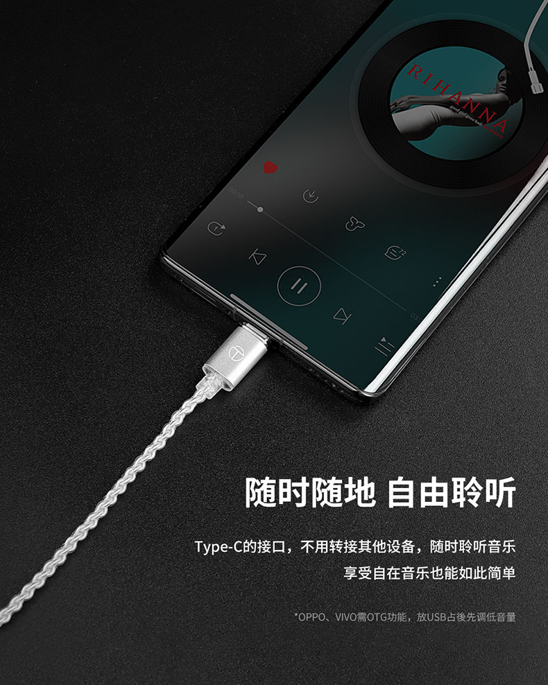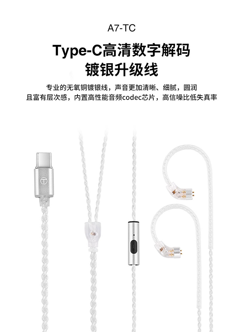 TRN A7 type-c 실버 도금 업그레이드 와이어 HD 디지털 디코딩 안드로이드 애플 이어폰 케이블