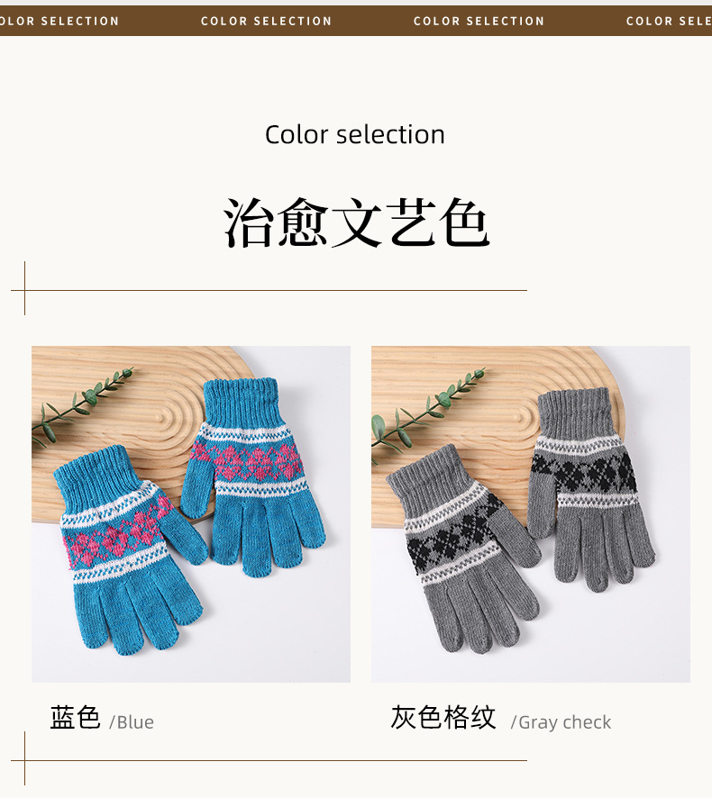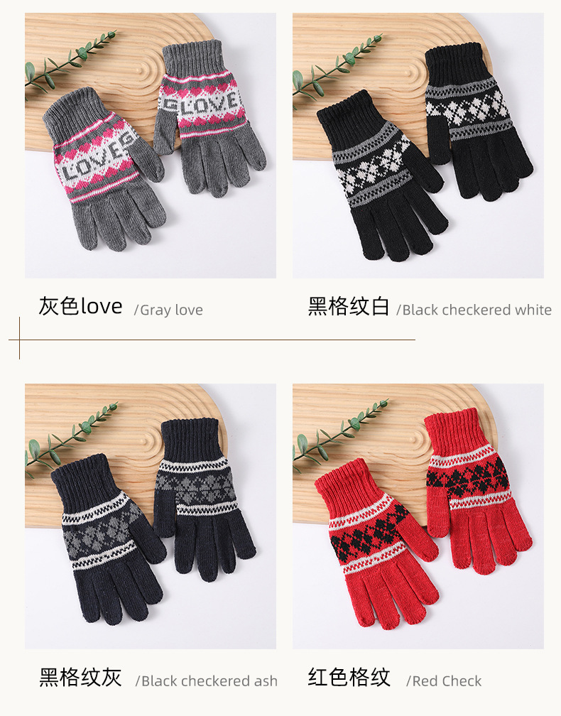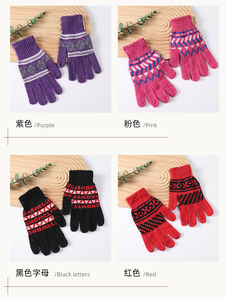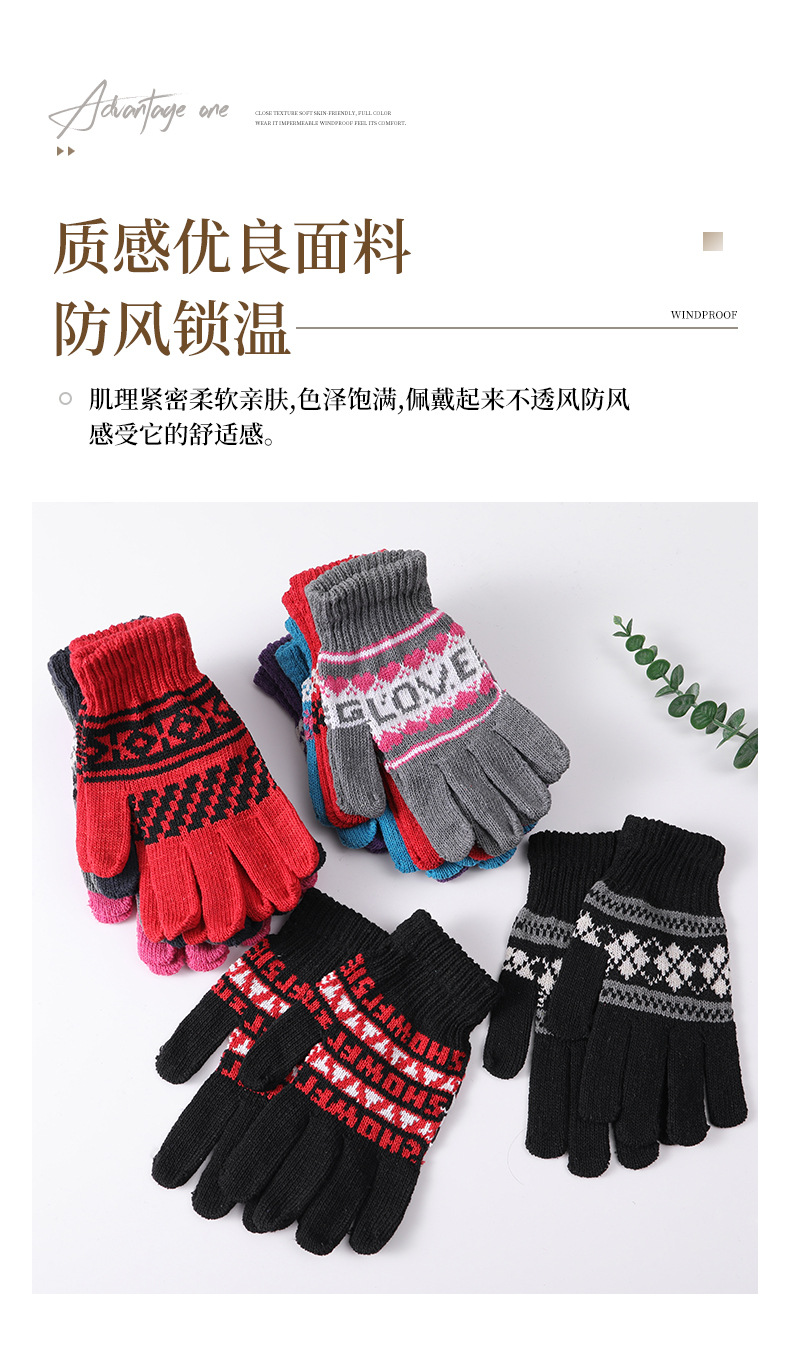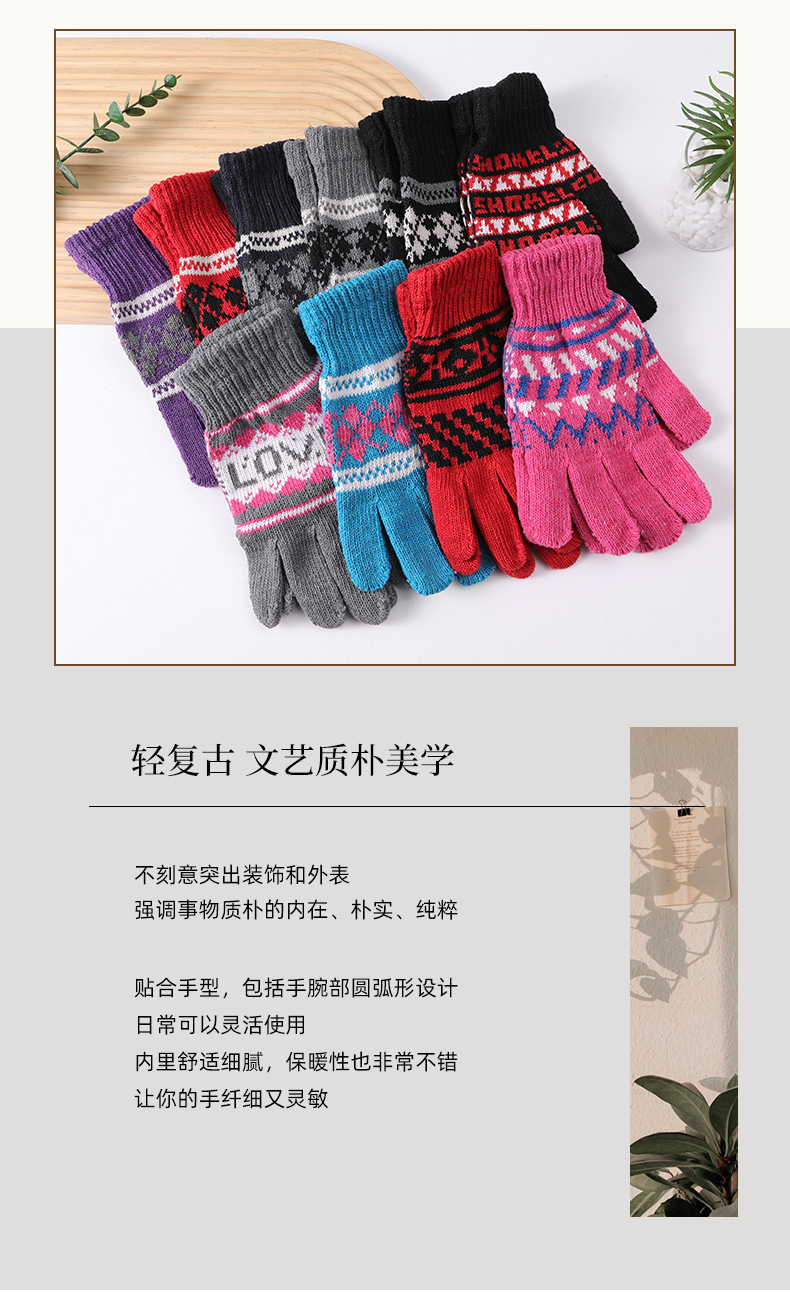 클래식 기하학적 패턴 자수 패턴 가을과 겨울 따뜻한 장갑 가벼운 복고풍 손가락 장갑 남녀 공용 스타일