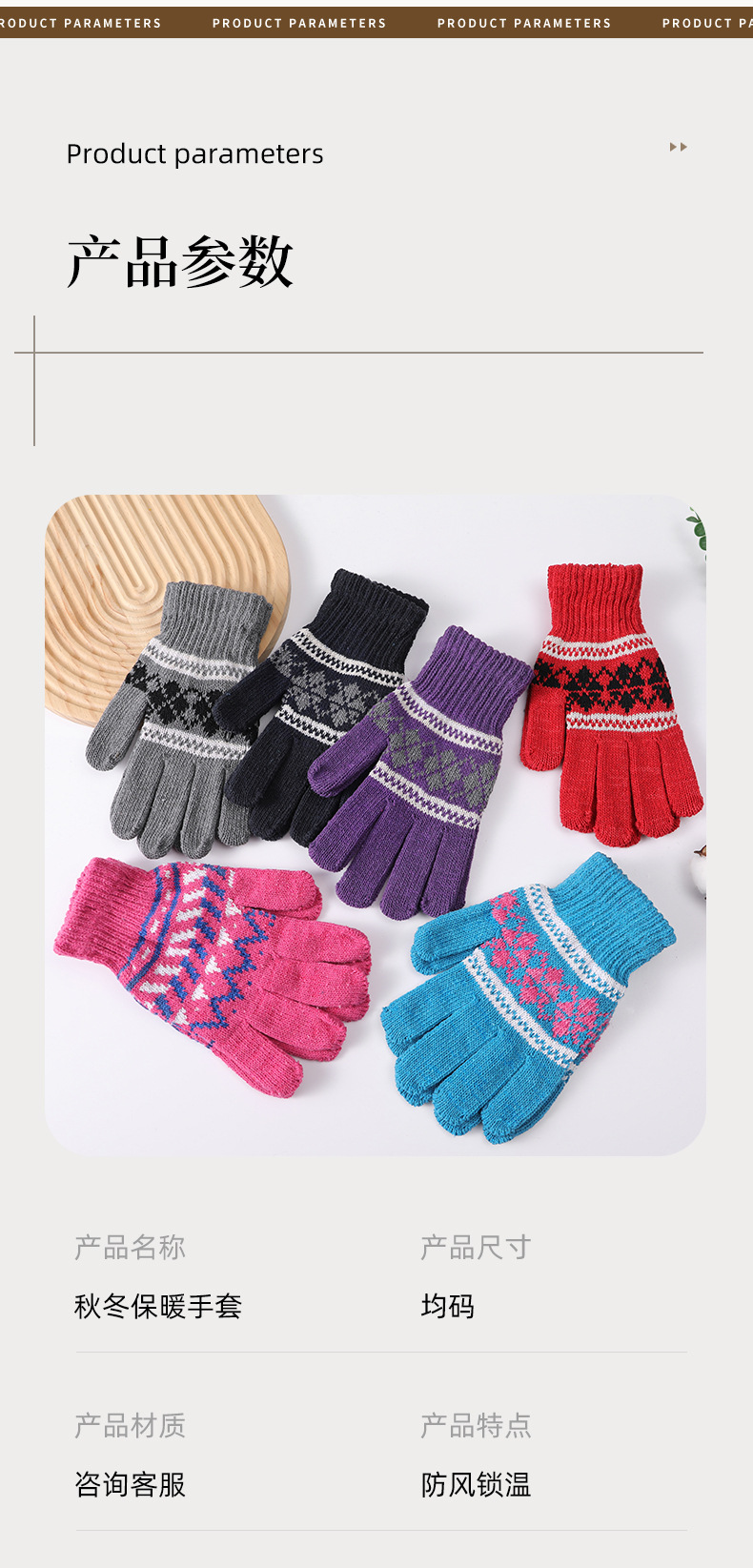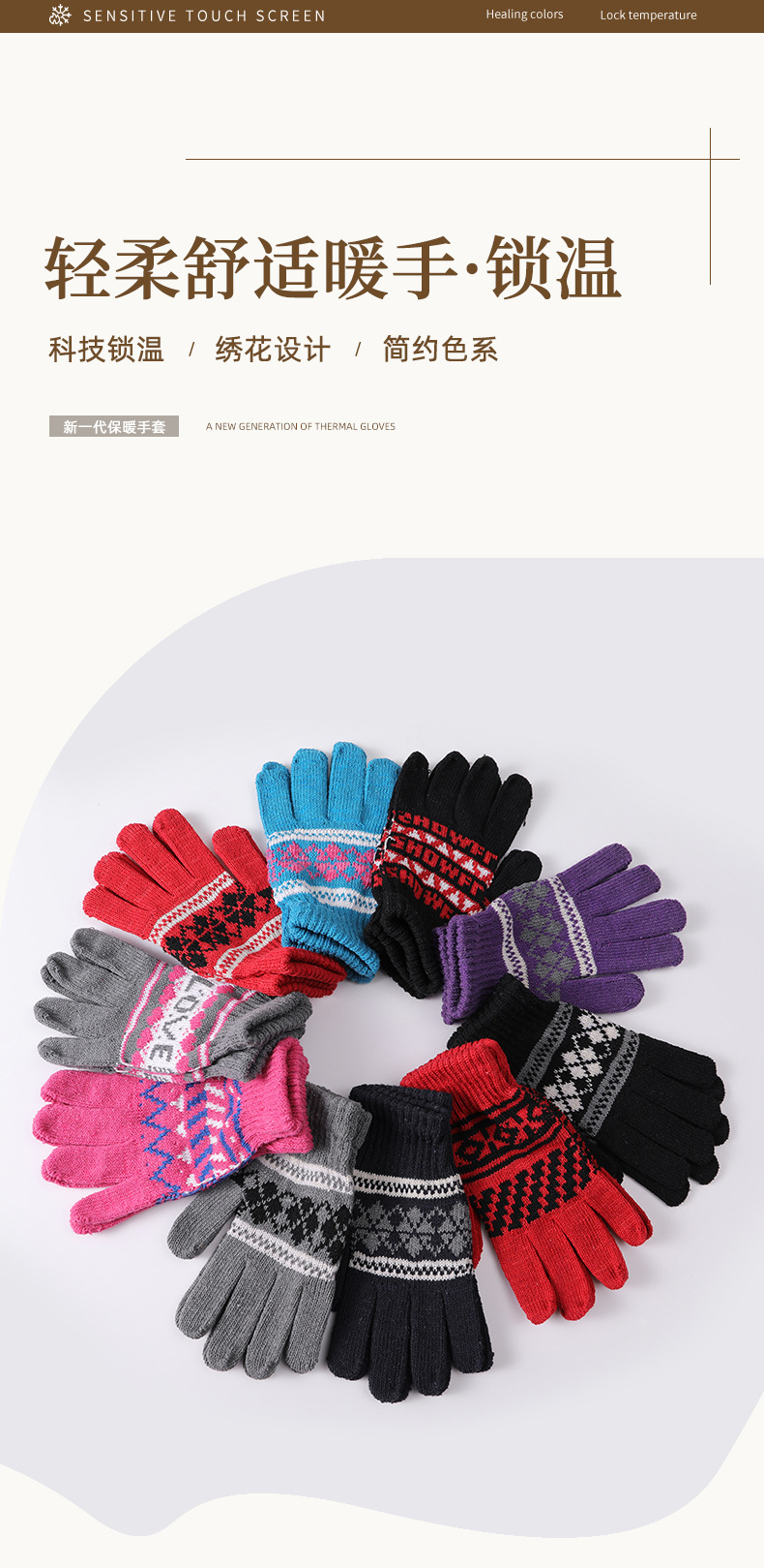클래식 기하학적 패턴 자수 패턴 가을과 겨울 따뜻한 장갑 가벼운 복고풍 손가락 장갑 남녀 공용 스타일스토어 가기