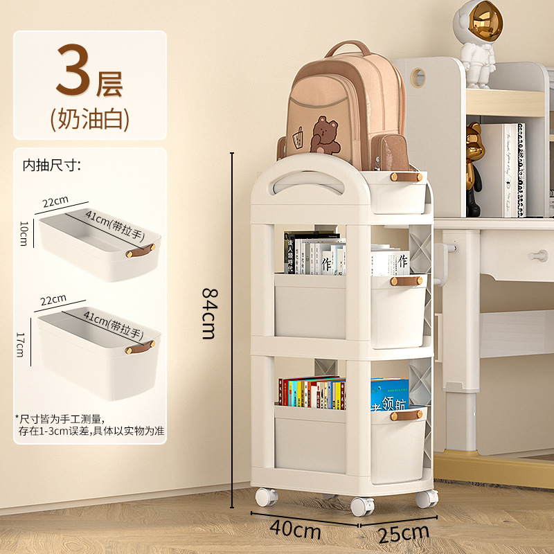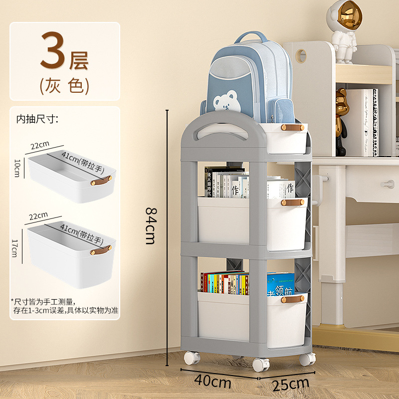 책가방 책 보관 랙 이동식 카트 사무실 수납 캐비닛 테이블 아래 풀리가있는 간단한 다층 책장