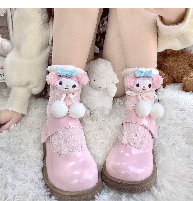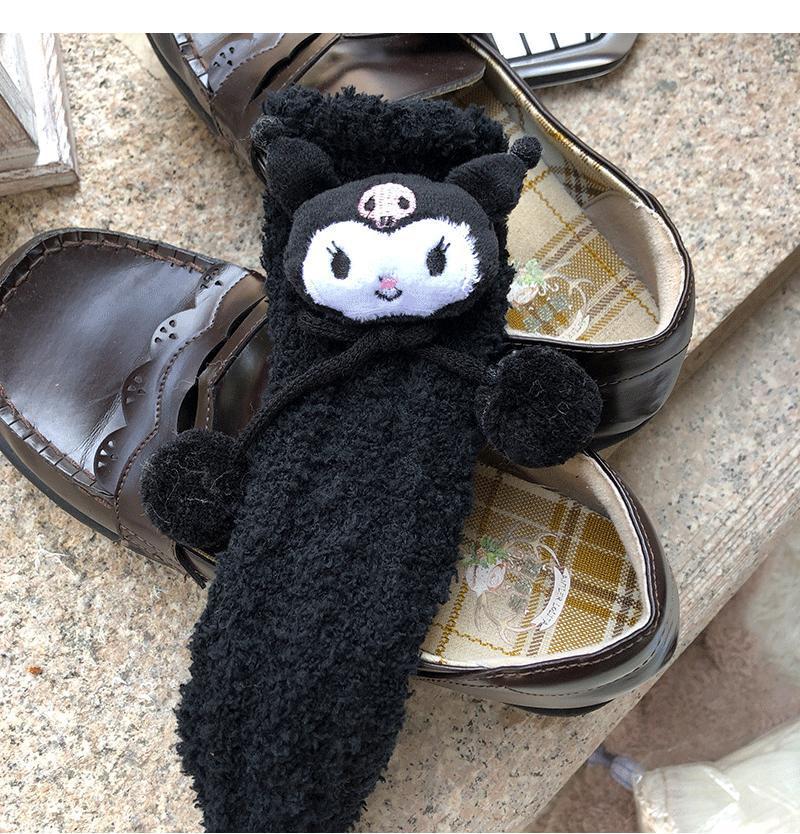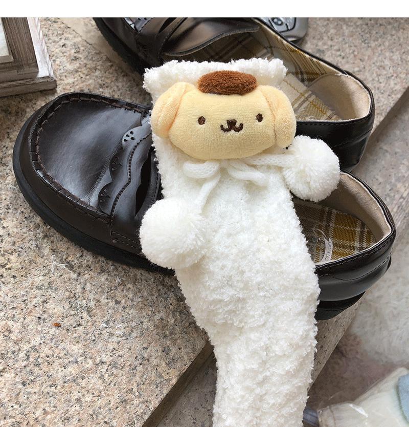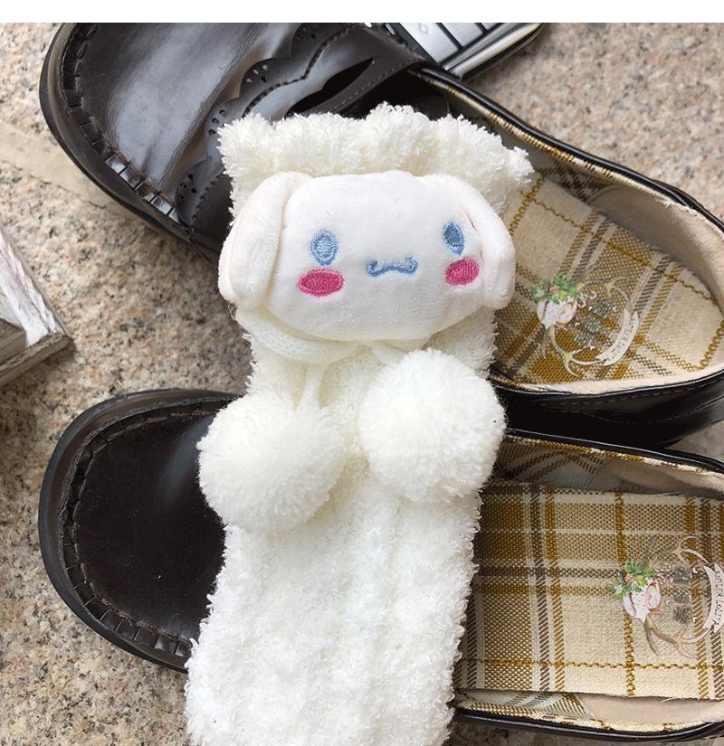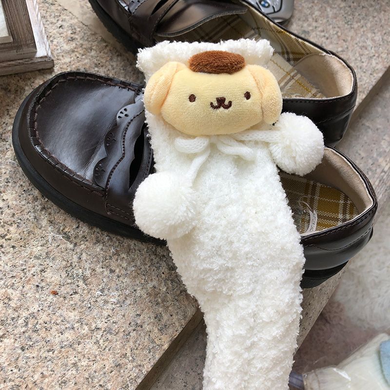 유구이 개 산호 벨벳 양말 여자의 가을과 겨울 두꺼운 일본 jk 모피 공 귀여운 입체 인형 커플 수면 양말 따뜻한