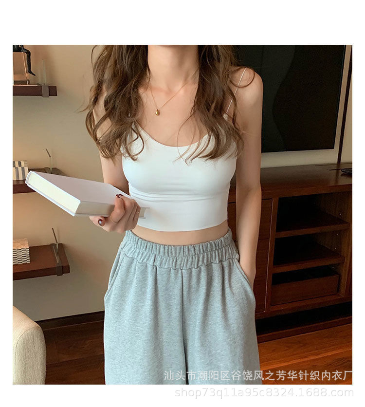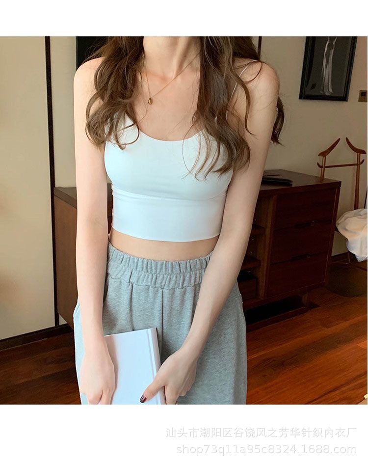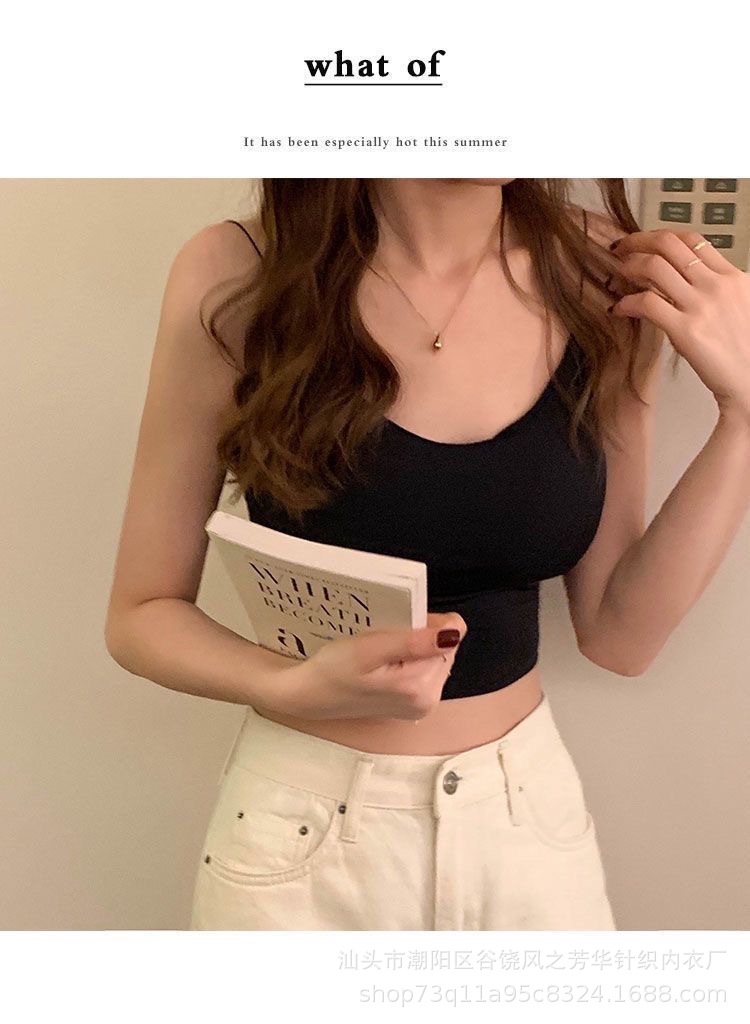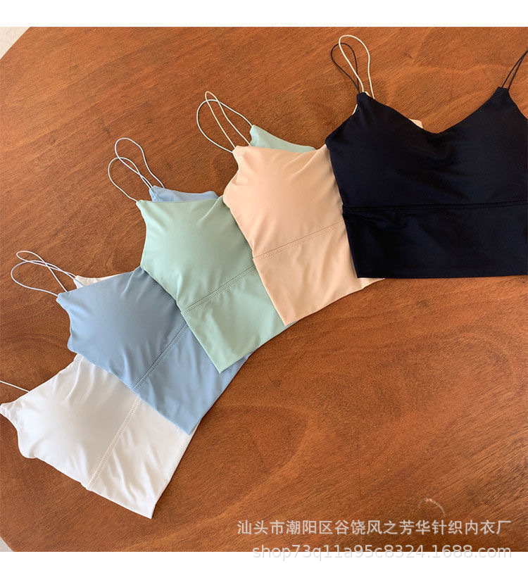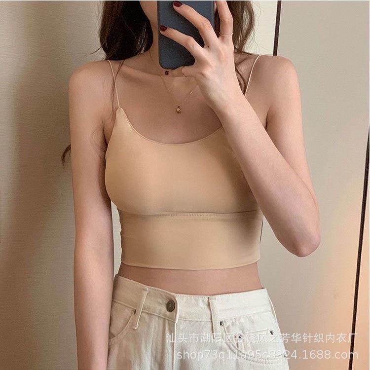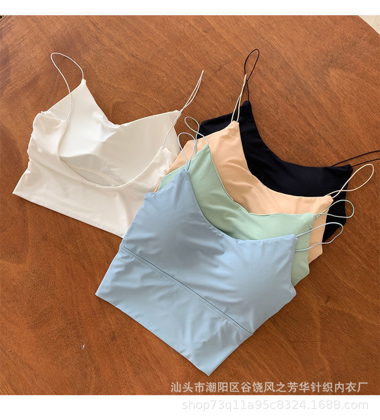 U-모양의 아이스 실크 아름다운 백링리스 카미 솔 조끼 여성의 얇은 어깨 스트랩베이스 튜브 탑 가슴 패드 섹시한 내부 탑스토어 가기