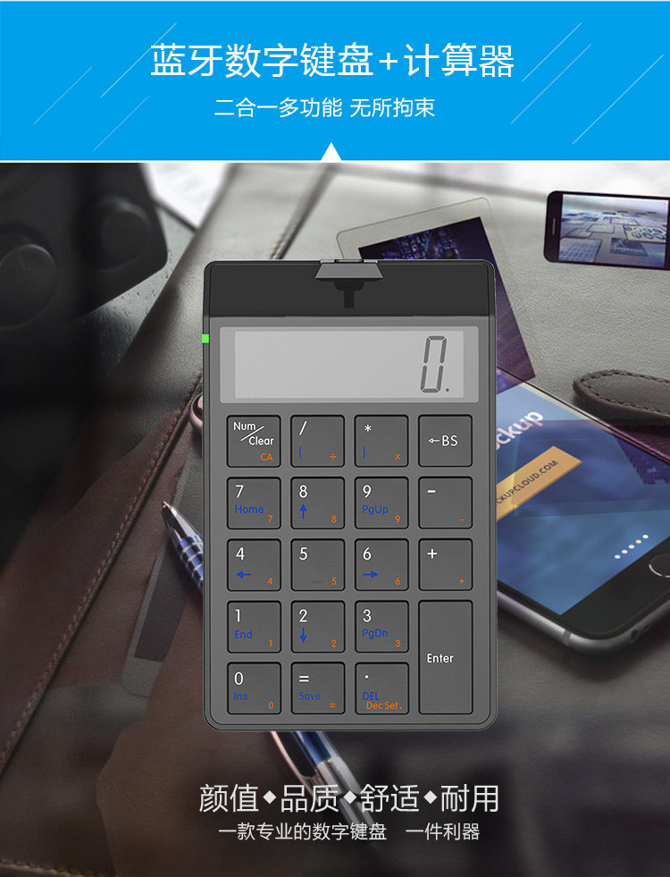 Sanride KC9001S 블루투스 무선 디지털 키보드 재무 회계 충전 키패드 디스플레이 계산기