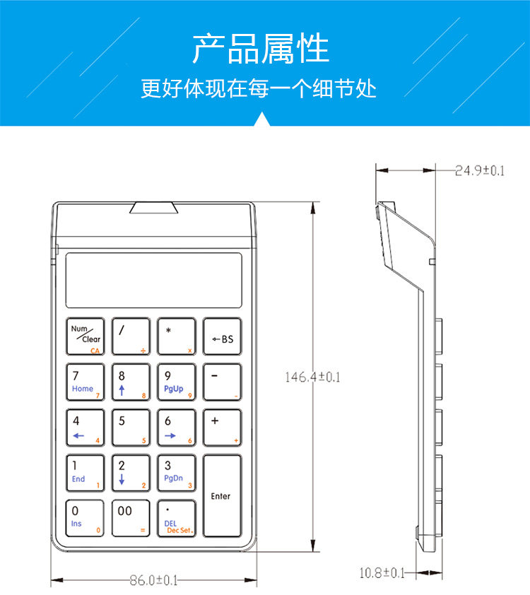 Sanride KC9001S 블루투스 무선 디지털 키보드 재무 회계 충전 키패드 디스플레이 계산기스토어 가기