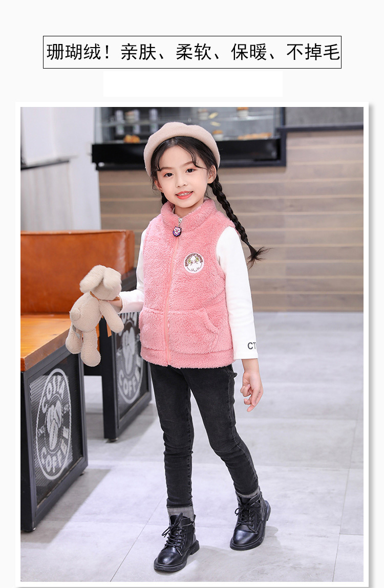 어린이 조끼 여아 산호 양털 조끼 기모 큰 어린이 여자의 봉제 휘슬 양털 아기 양털 조끼스토어 가기