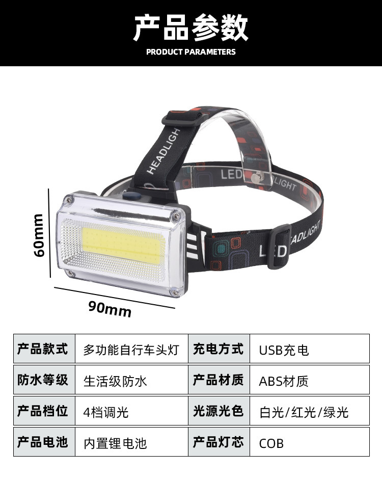 Led 강한 빛 헤드 램프 헤드 마운트 충전 COB 대형 투광 조명 작업 램프 자전거 램프 광부 램프 양봉 램프 크로스 보더