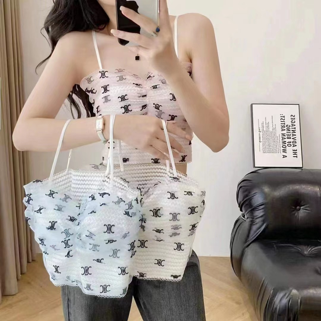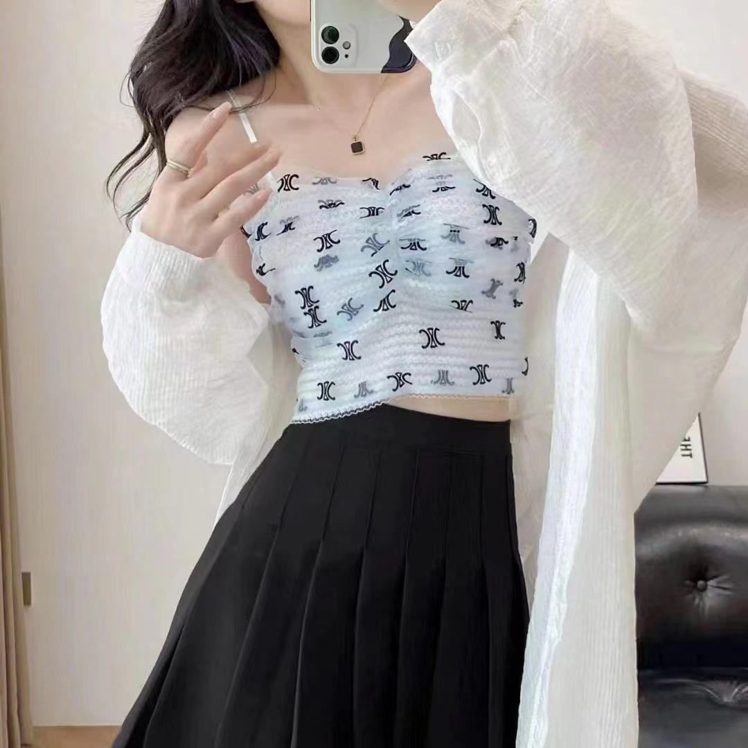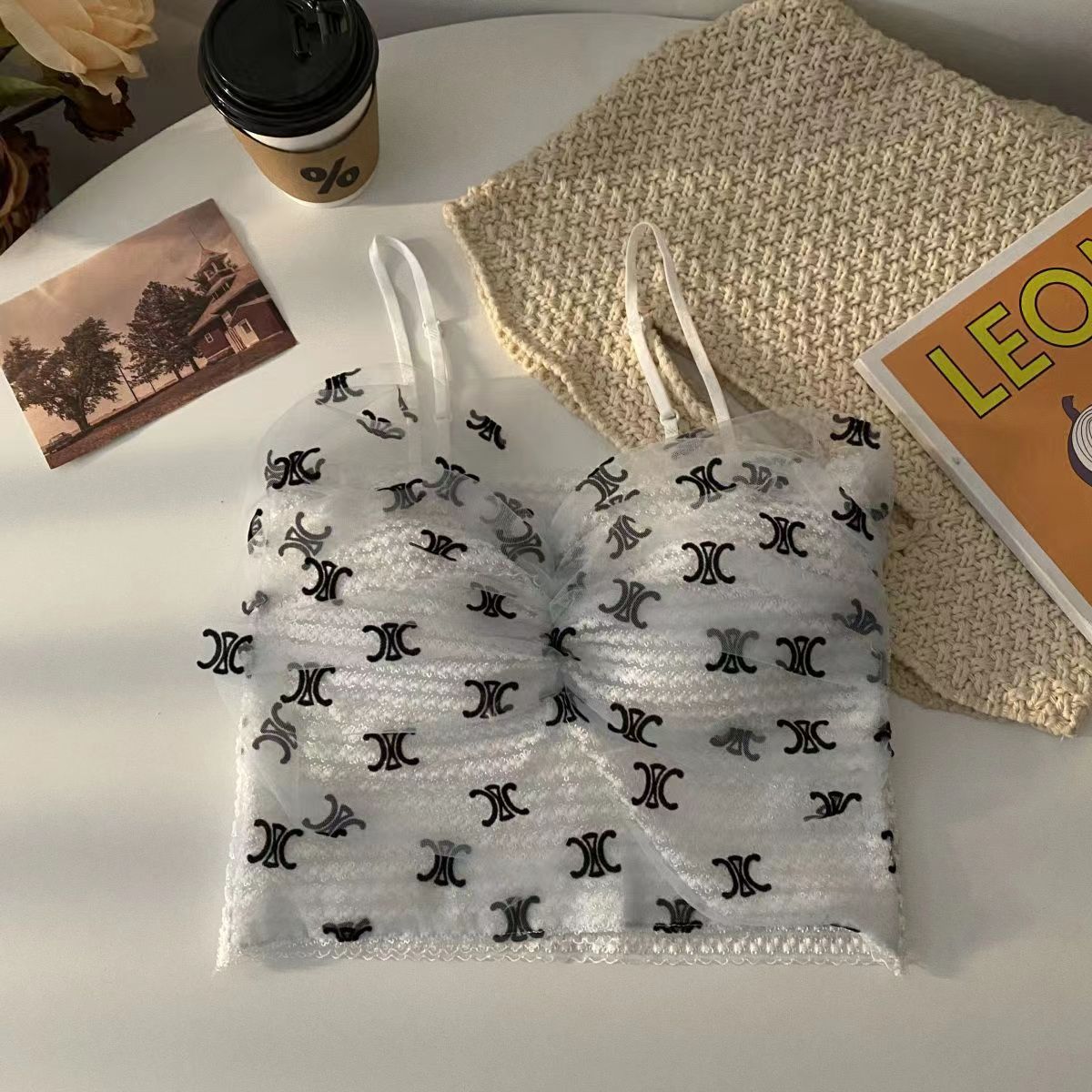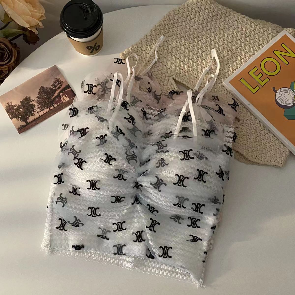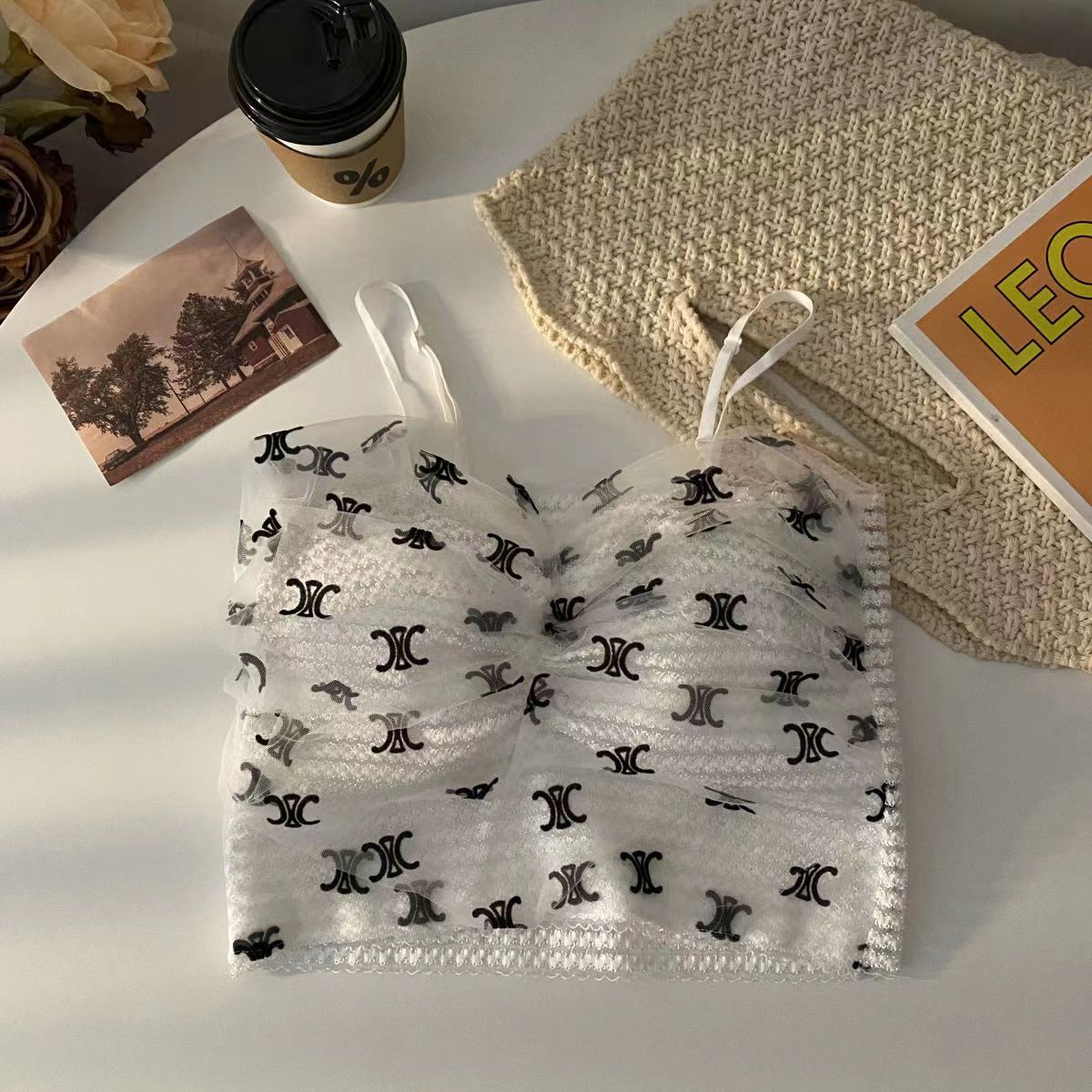 메쉬 스티칭 끈이없는 캐미솔 여성의 여름 새로운 스타일 뜨거운 소녀 디자인 섹시한 하이 웨이스트 민소매 탑스토어 가기
