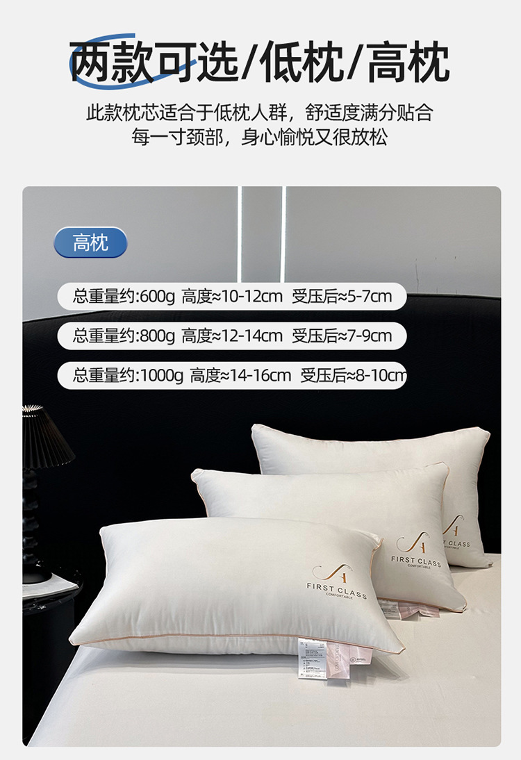 • 코튼 클래스 A 호텔 베개 (낮은 베개 군중) 높은 베개 (압축 후 6-8cm)
