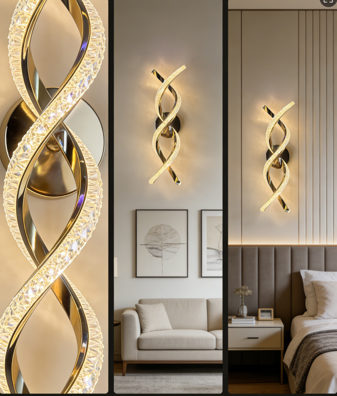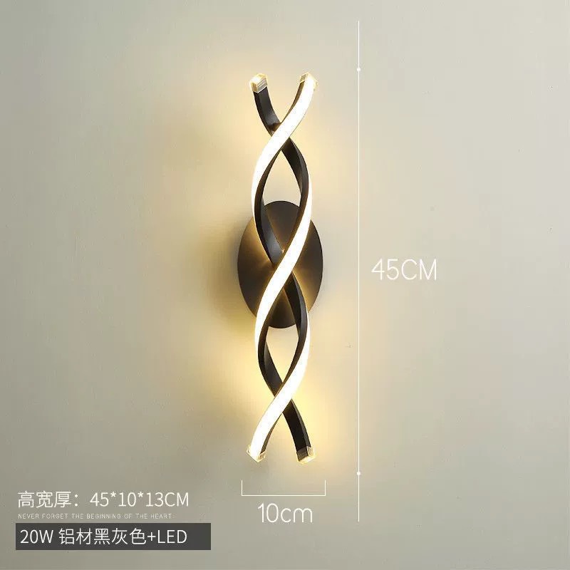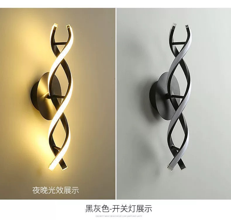나선형 LED 벽등, 복도, 현관등, 알루미늄 발코니, 침실, 침대 옆 배경 벽등, 3색 변광