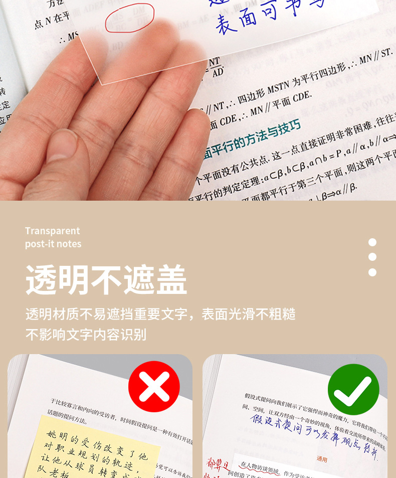 투명한 포스트잇 노트는 찢어서 붙여 넣을 수 있습니다. 그물 빨간 학생 노트 스티커 방수는 머리카락을 쓸 수 있습니다스토어 가기