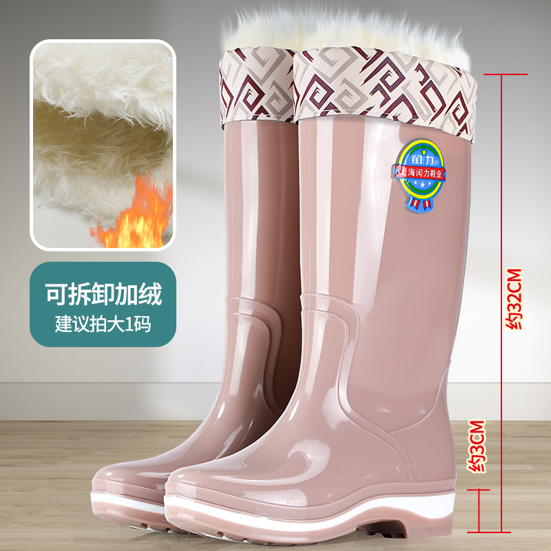 룬리 여성용 하이탑 레인부츠, 아웃도어 패션 미끄럼 방지 방수 신발, 롱부츠, 두꺼운 내마모성 레인부츠, 따뜻한 워터부츠스토어 가기